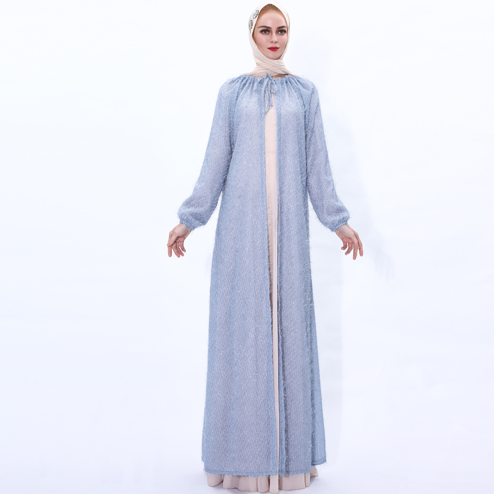2021 Dubai Kimono Manset Elastis Pakaian Islam Muslimah Maxi Dress Buka Abaya