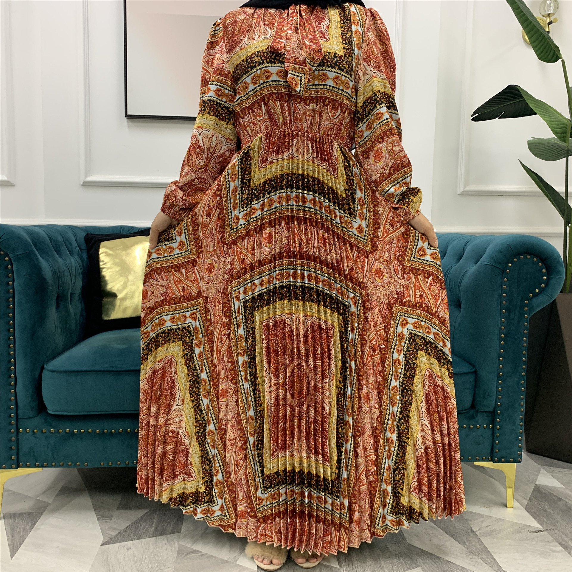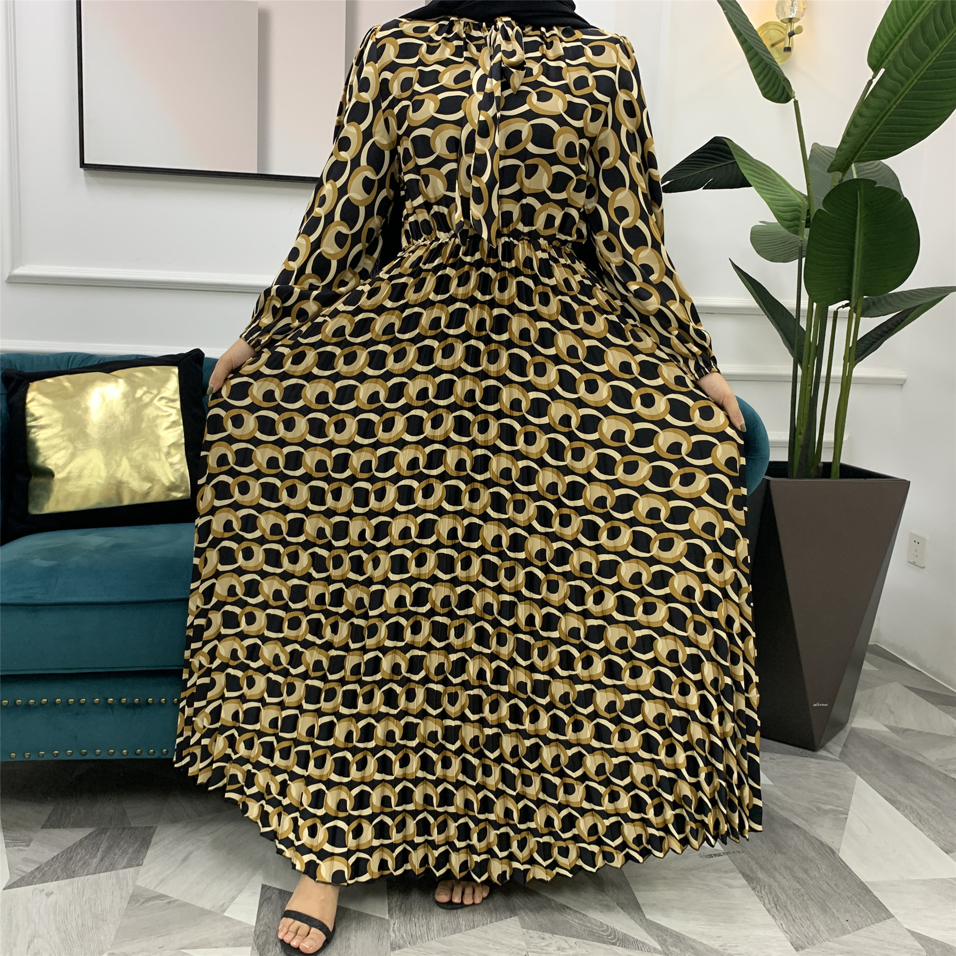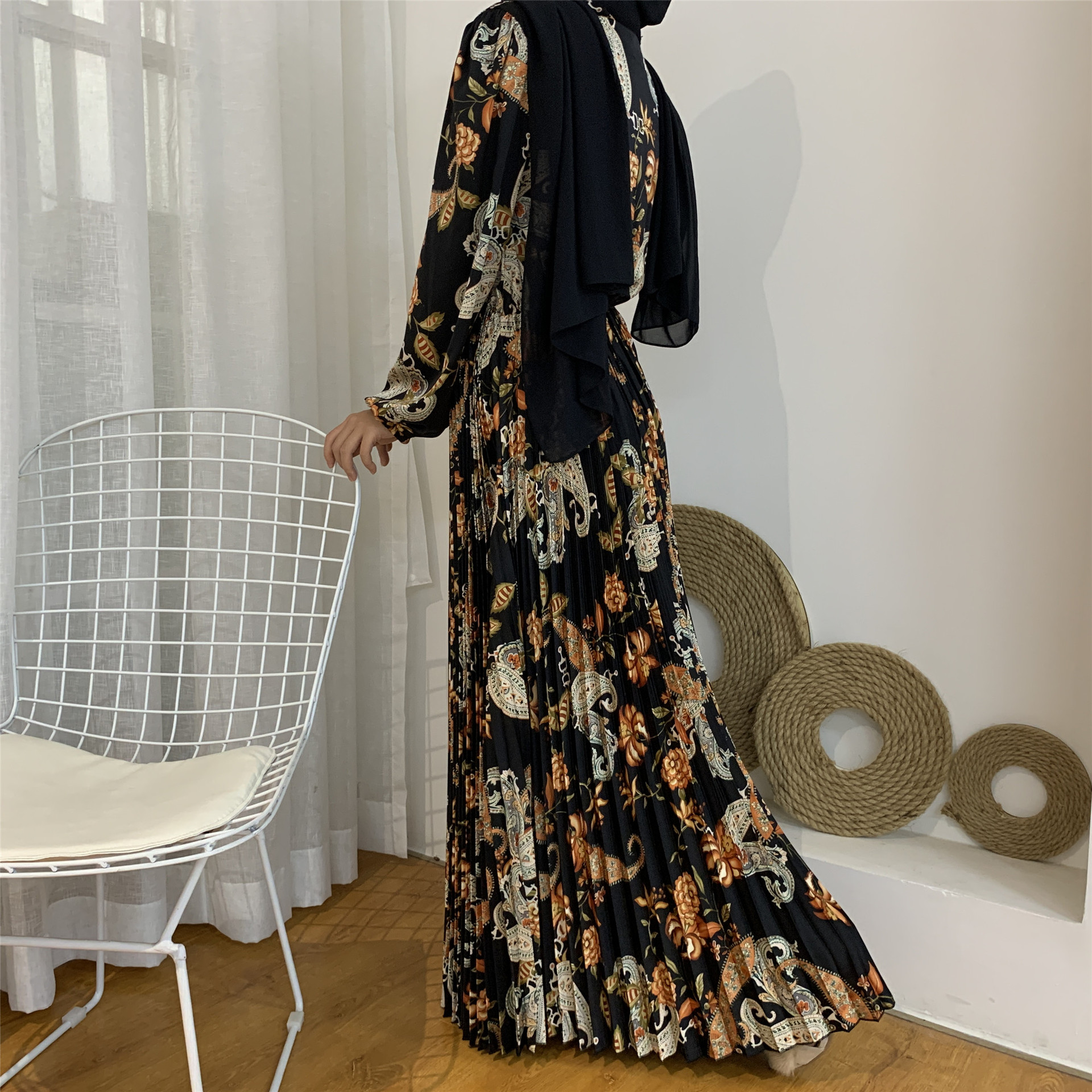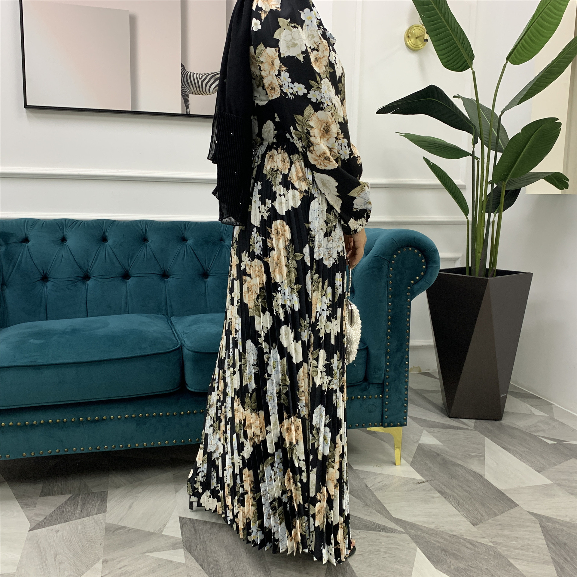 You are here:Home » Products » Abaya / Maxi Dress » 2022 AliExpress Amazon New Fashion Print Pleated Big Skirt Muslim Dress