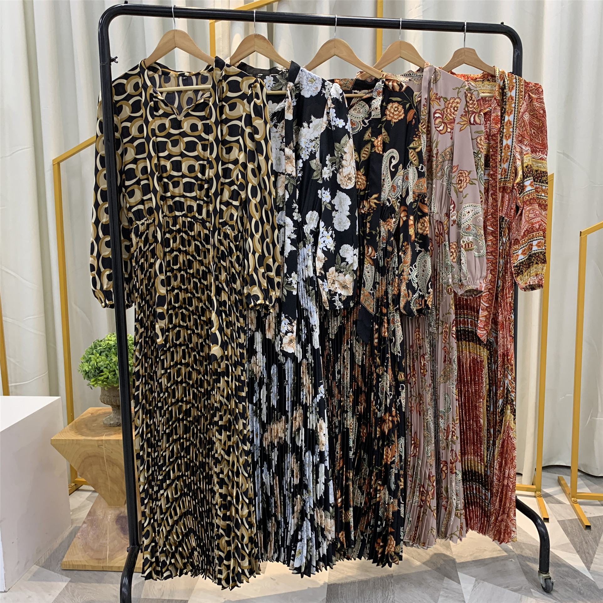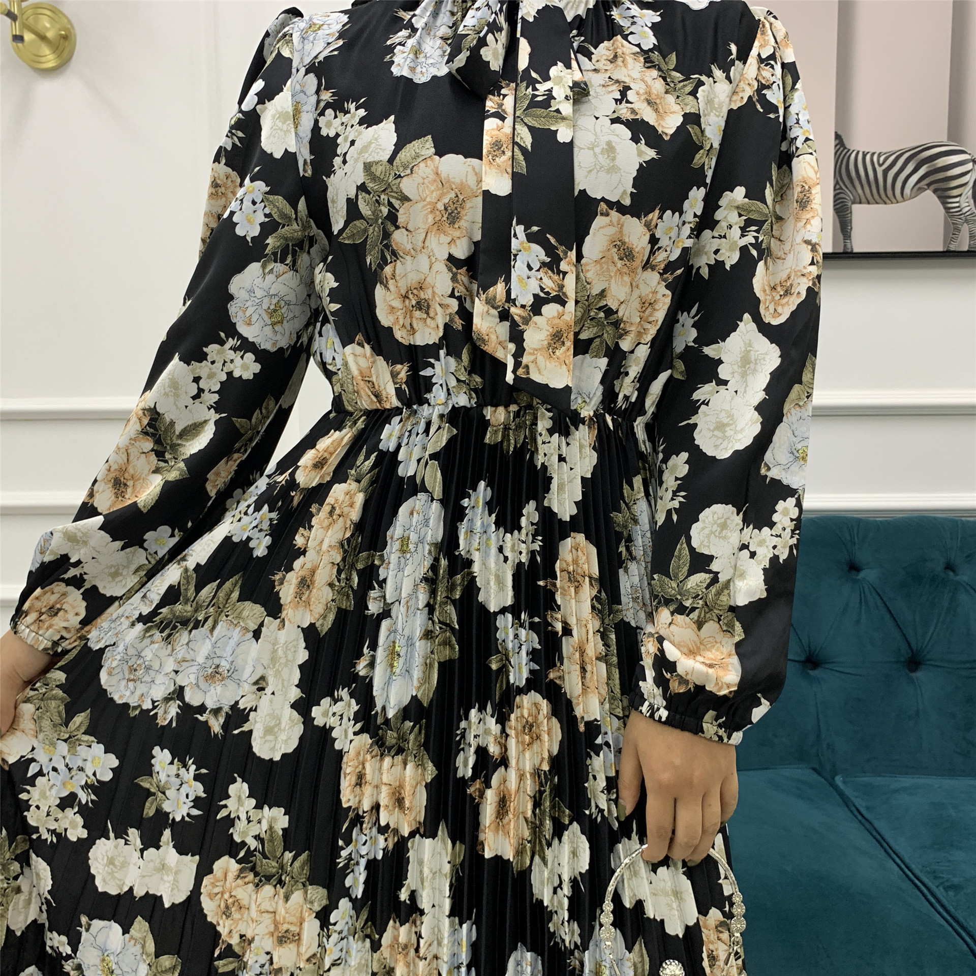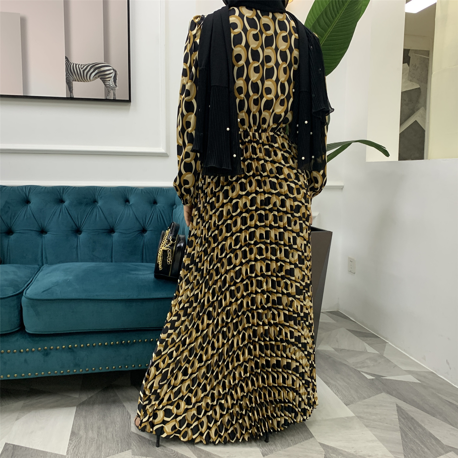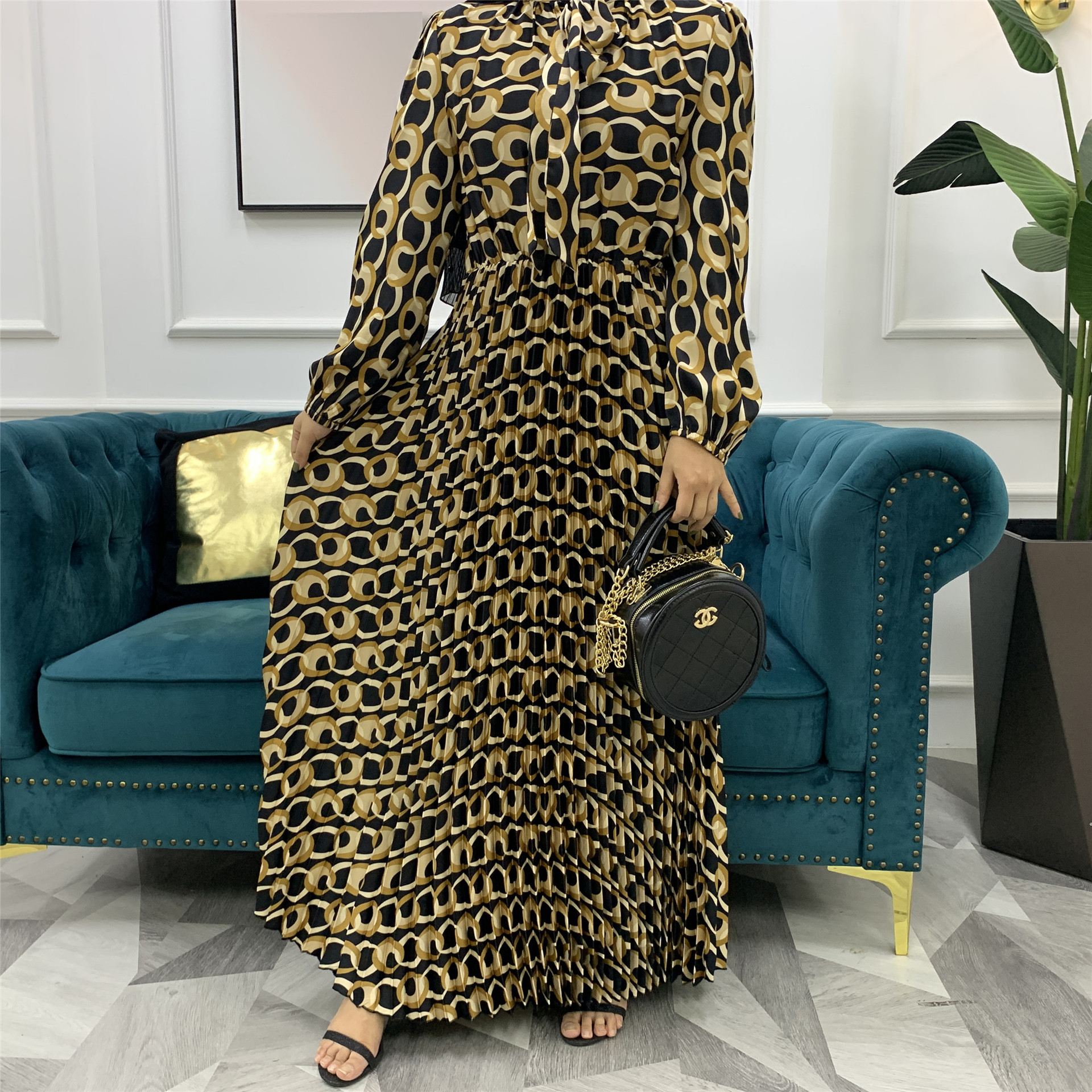 You are here:Home » Products » Abaya / Maxi Dress » 2022 AliExpress Amazon New Fashion Print Pleated Big Skirt Muslim Dress