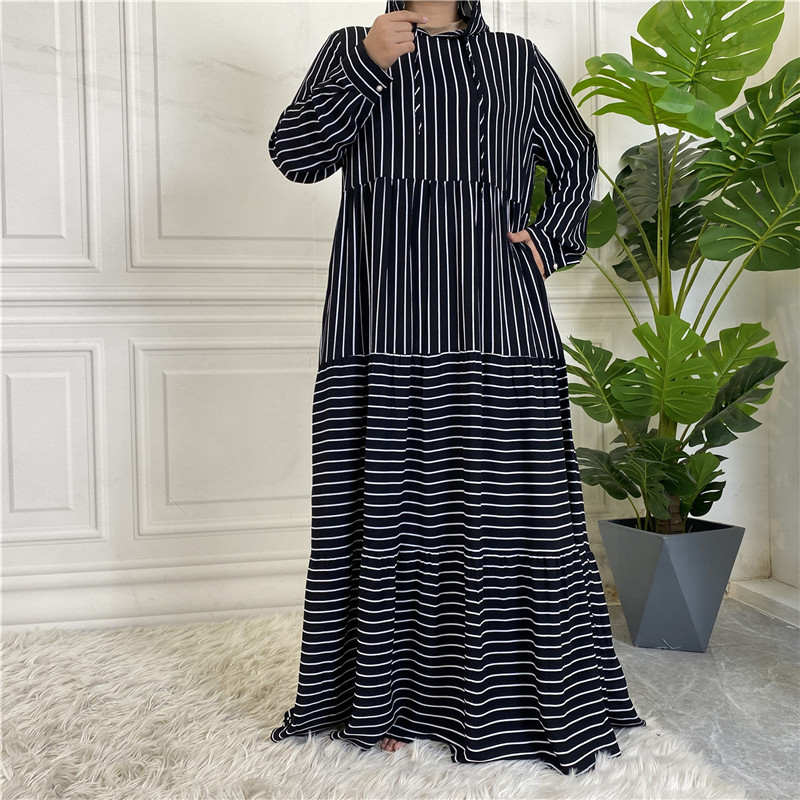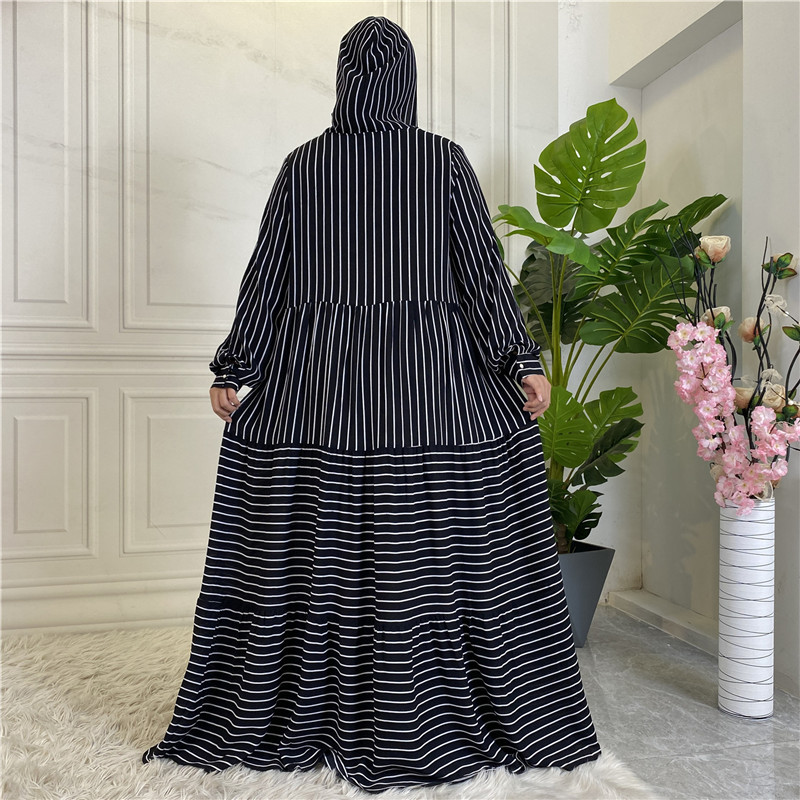 2022 AliExpress Hot Sale for Muslims in Europe and America Middle East Arabian Striped Hooded Ladies Dress
