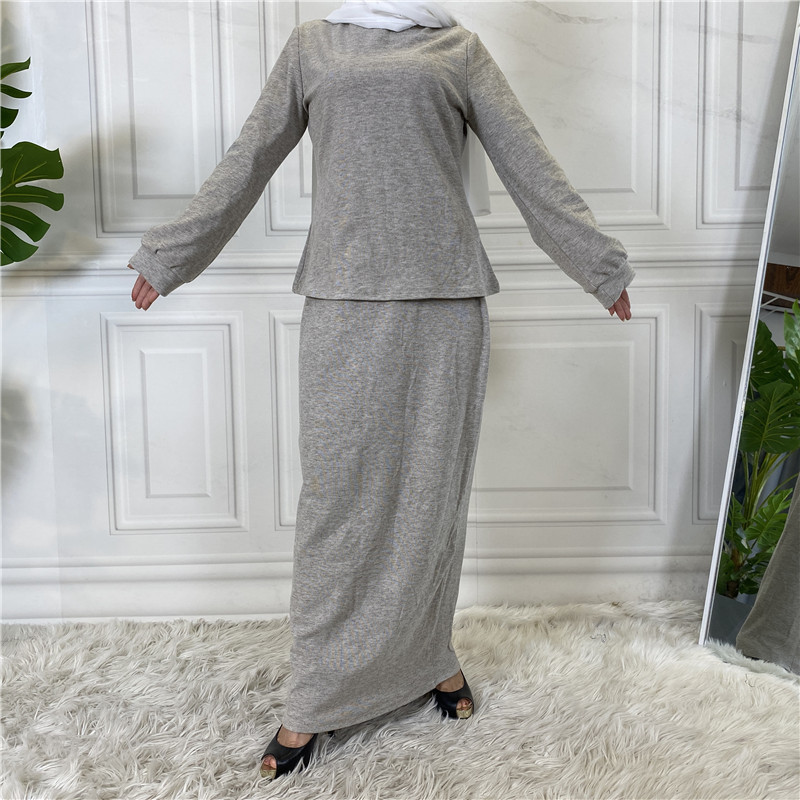 2022 Amazon AliExpress Hot Sale Fashion Simple Turkey Malaysia Pure Color Dress Set