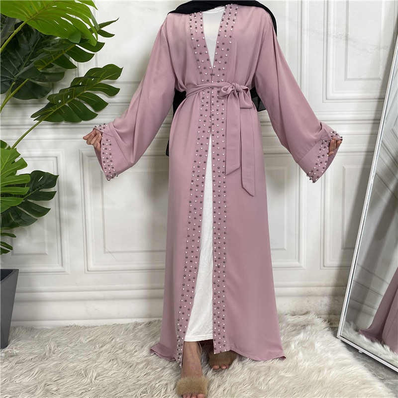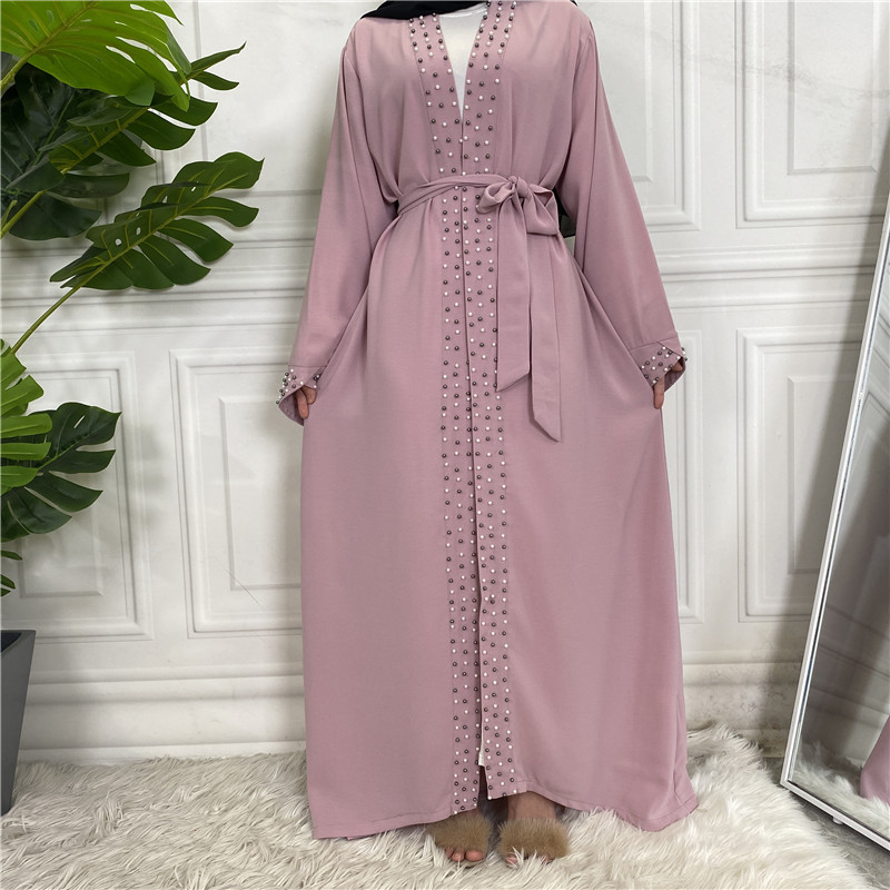 2022 Arab Turkey Color Beaded Muslim Lace Cardigan Robe Middle East Fashion Elegant Pure