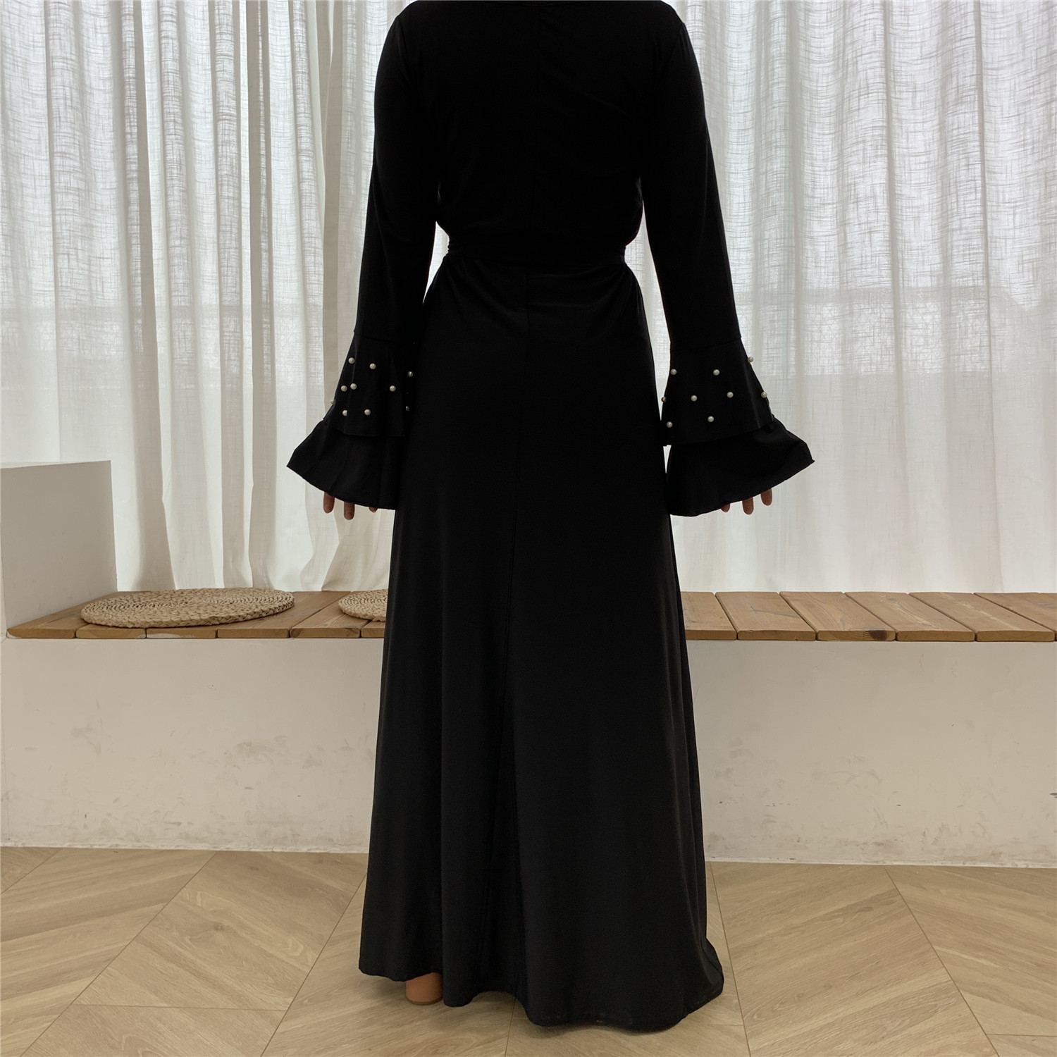 You are here:Home » Products » Abaya / Maxi Dress » 2022 European And American Fashion Multi-layer Flared Sleeve Fashion Beaded Lace-up Slim Long-sleeved Dress