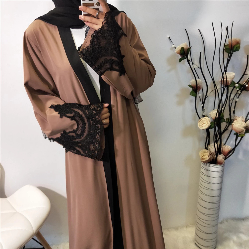 2022 Middle Eastern Muslim Fashion Women's Lace Stitching Lace-up Ramadan Cardigan Robe
