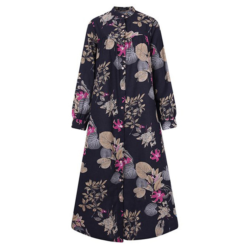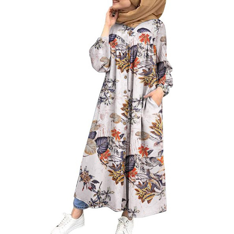 You are here:Home » Products » Abaya / Maxi Dress » 2022 Muslim Cotton And Linen Printed Dress Muslim Robe Dress Big Swing Dress