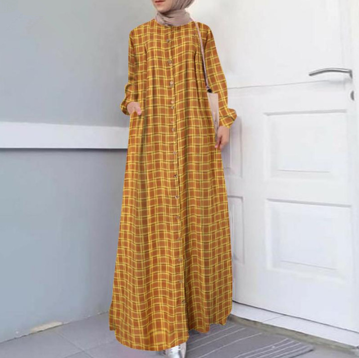 You are here:Home » Products » Abaya / Maxi Dress » 2022 Muslim Ethnic Clothing Muslim Long Skirt Plus Size Women's Long-sleeved Loose Plaid Long Dress