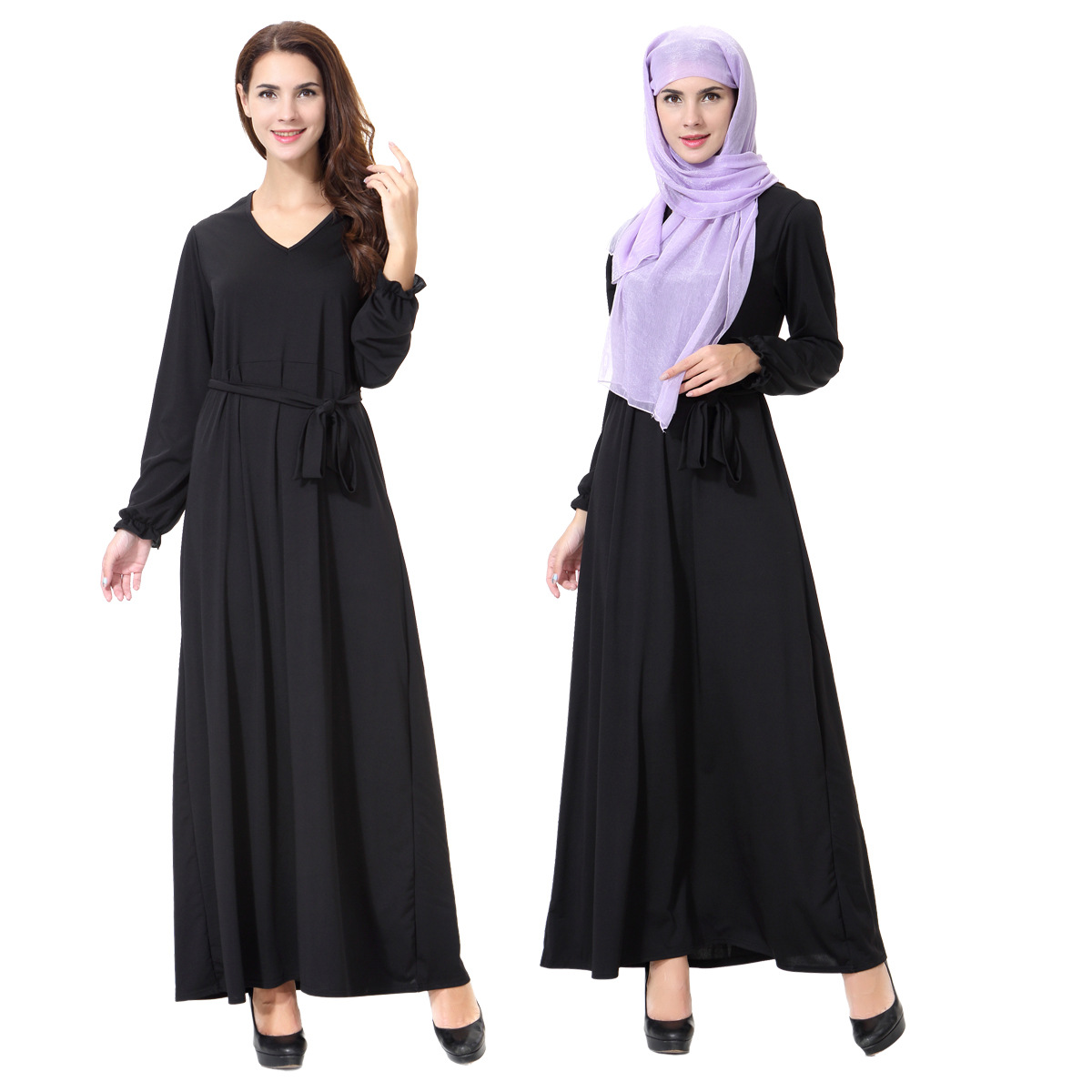 You are here:Home » Products » Abaya / Maxi Dress » 2022 Muslim Loose Casual Solid Color Round Neck Lantern Sleeve Irregular Stitching Long Sleeve Women's Dress