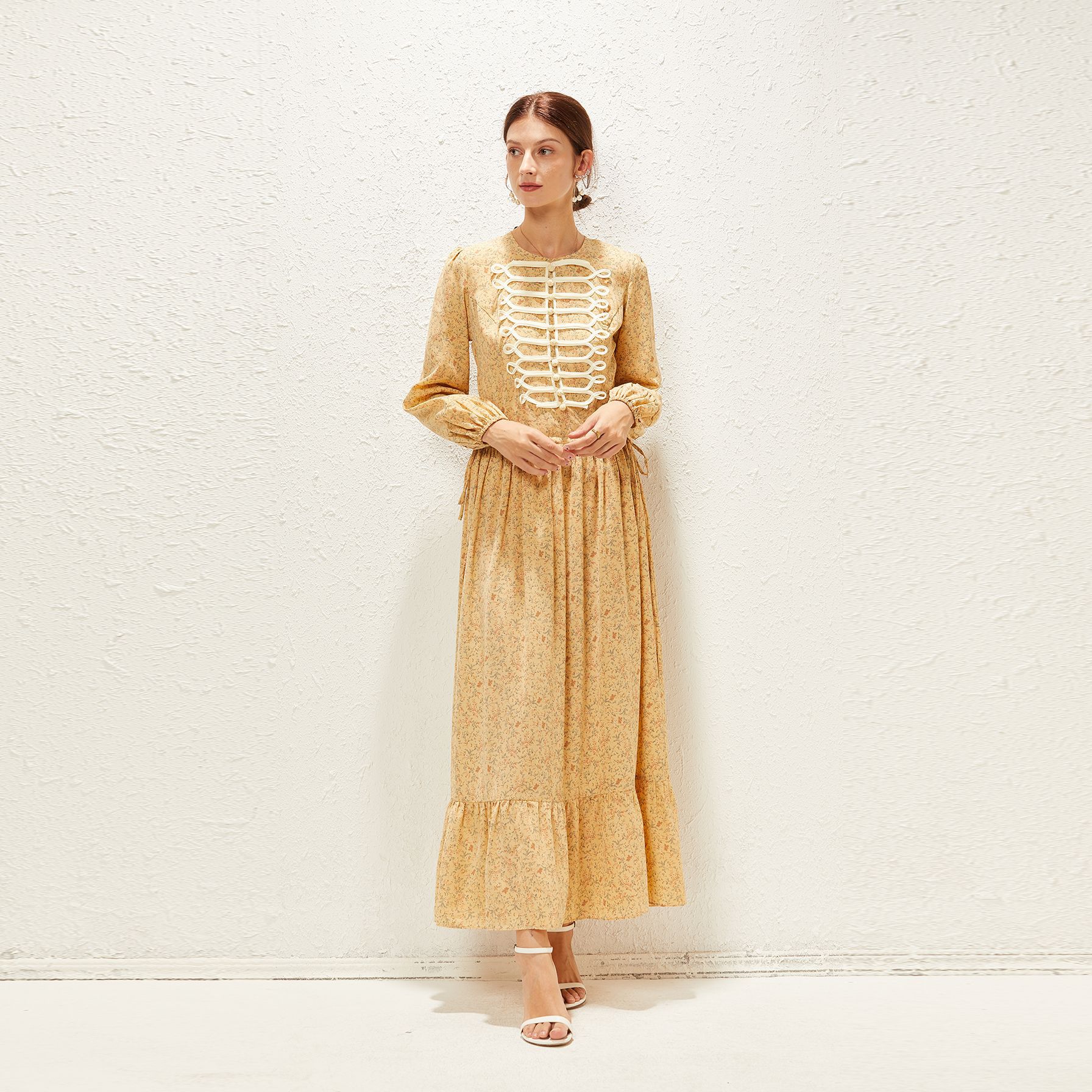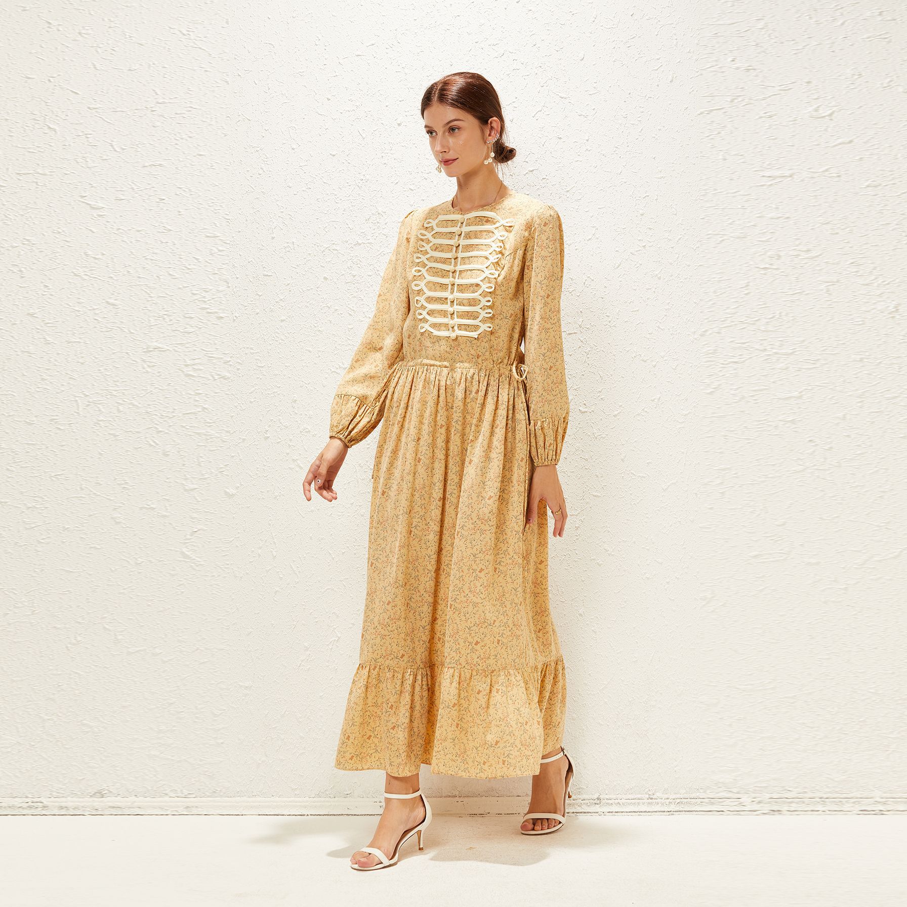 You are here: Home » Products » Abaya / Maxi Dress » 2022 Muslim New Dubai Elegant Loose Print Round Neck Middle East Chiffon Single Layer Long Skirt