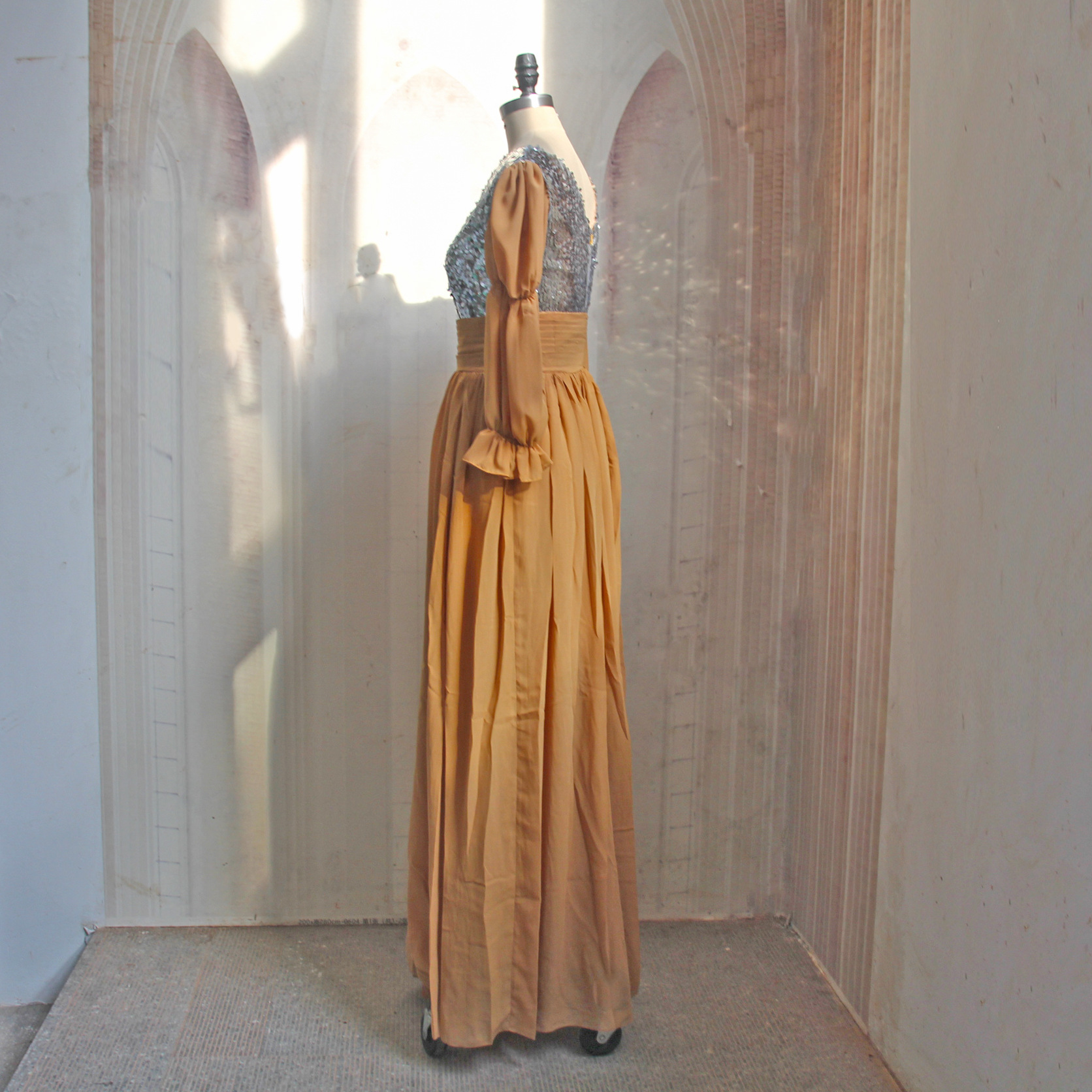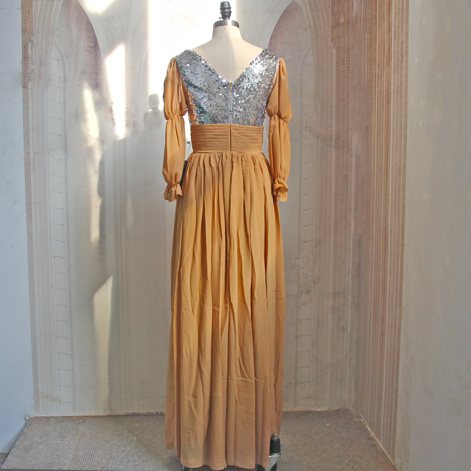 2022 Muslim New Elegant Casual Malaysian Chiffon Sequined V-neck Long-sleeved Waist Waist Dress