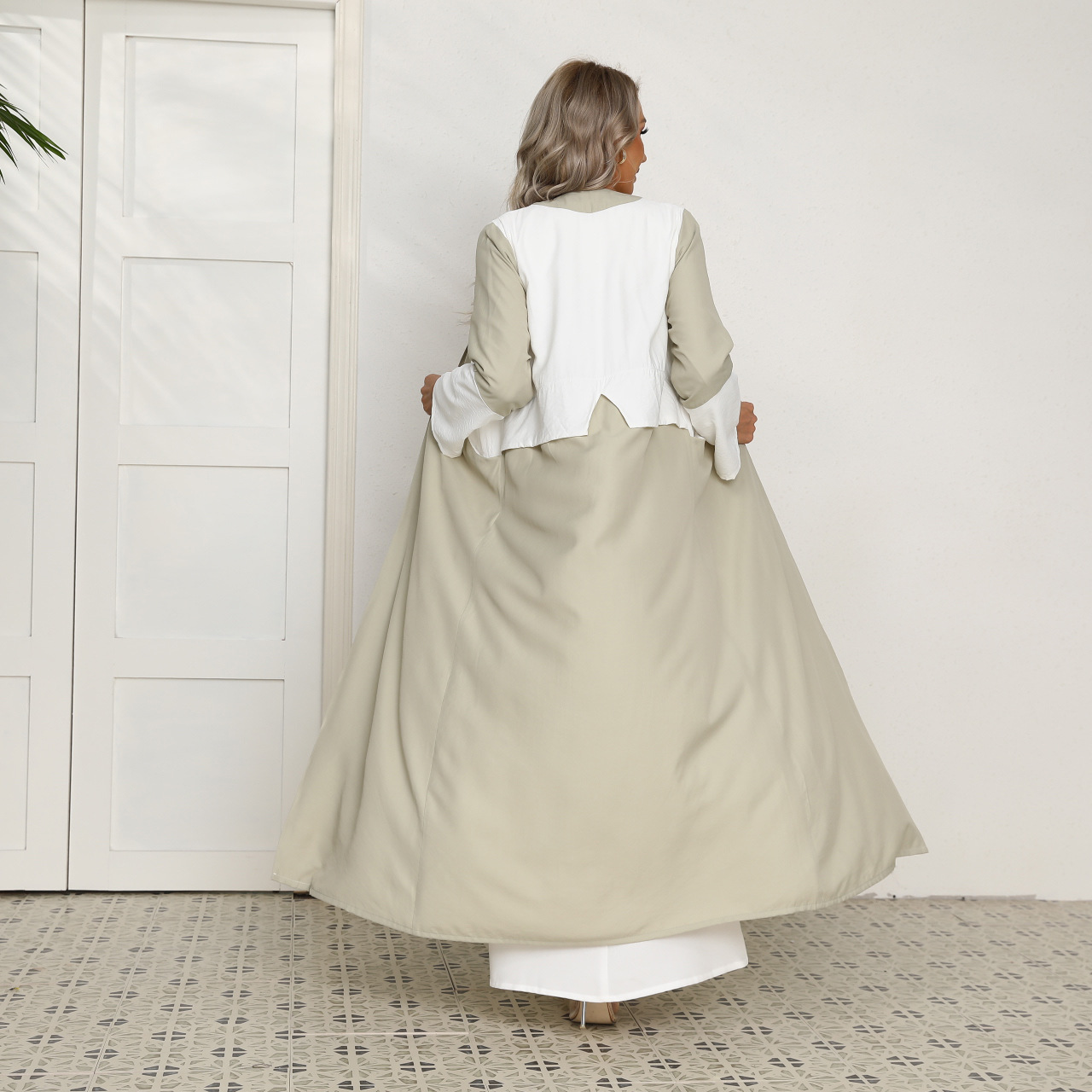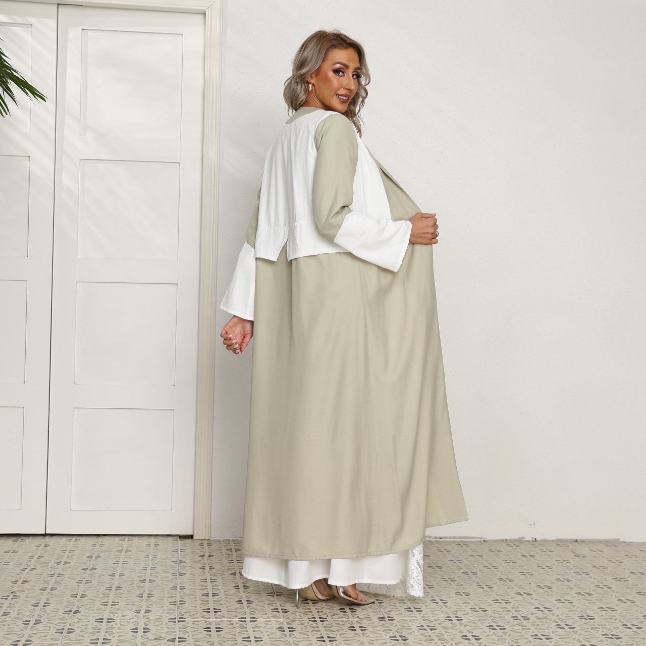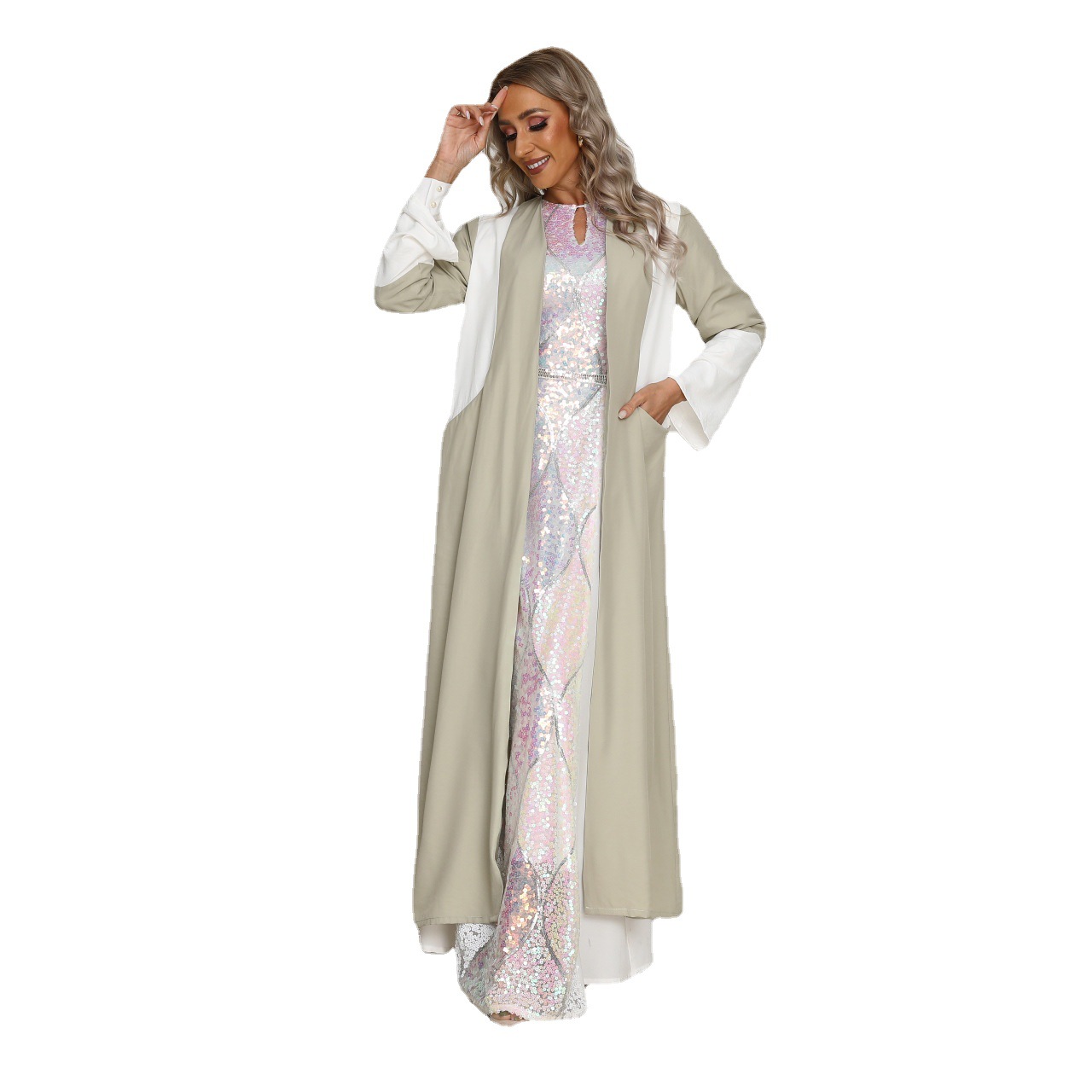 2022 Muslim Southeast Asia New Arab Solid Color Stitching Fashion Simple Belt Pocket Loose Elegant Middle East Jacket