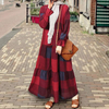 You are here:Home » Products » Abaya / Maxi Dress » 2022 Muslim Spring Cotton And Linen Literary Retro Dark Grid Loose Big Swing Long Sleeve Dress