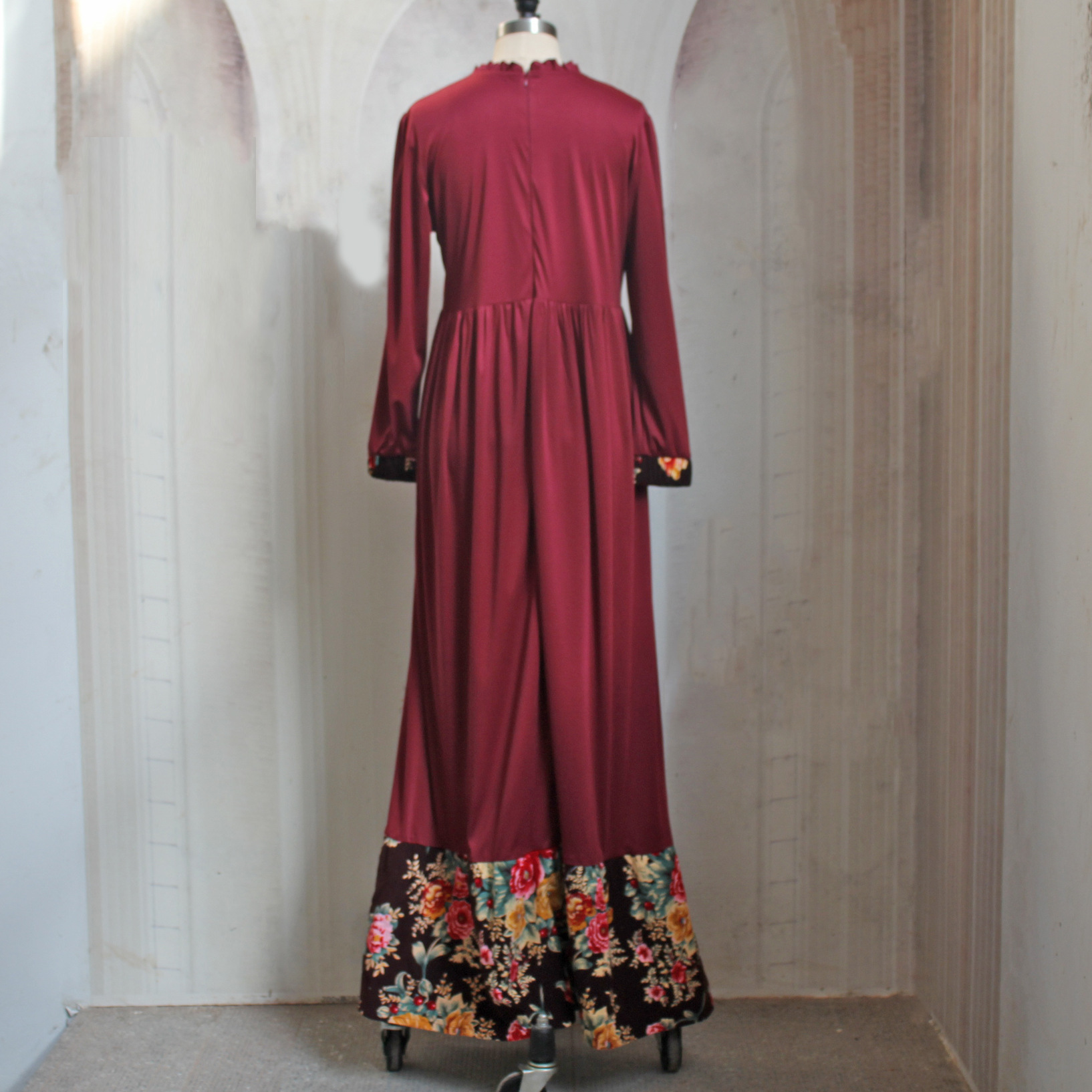 You are here: Home » Products » Abaya / Maxi Dress » 2022 Muslim Spring Elegant Elastic Cotton Arab Malaysian Soft Print Long Sleeve Round Neck Middle East Dress