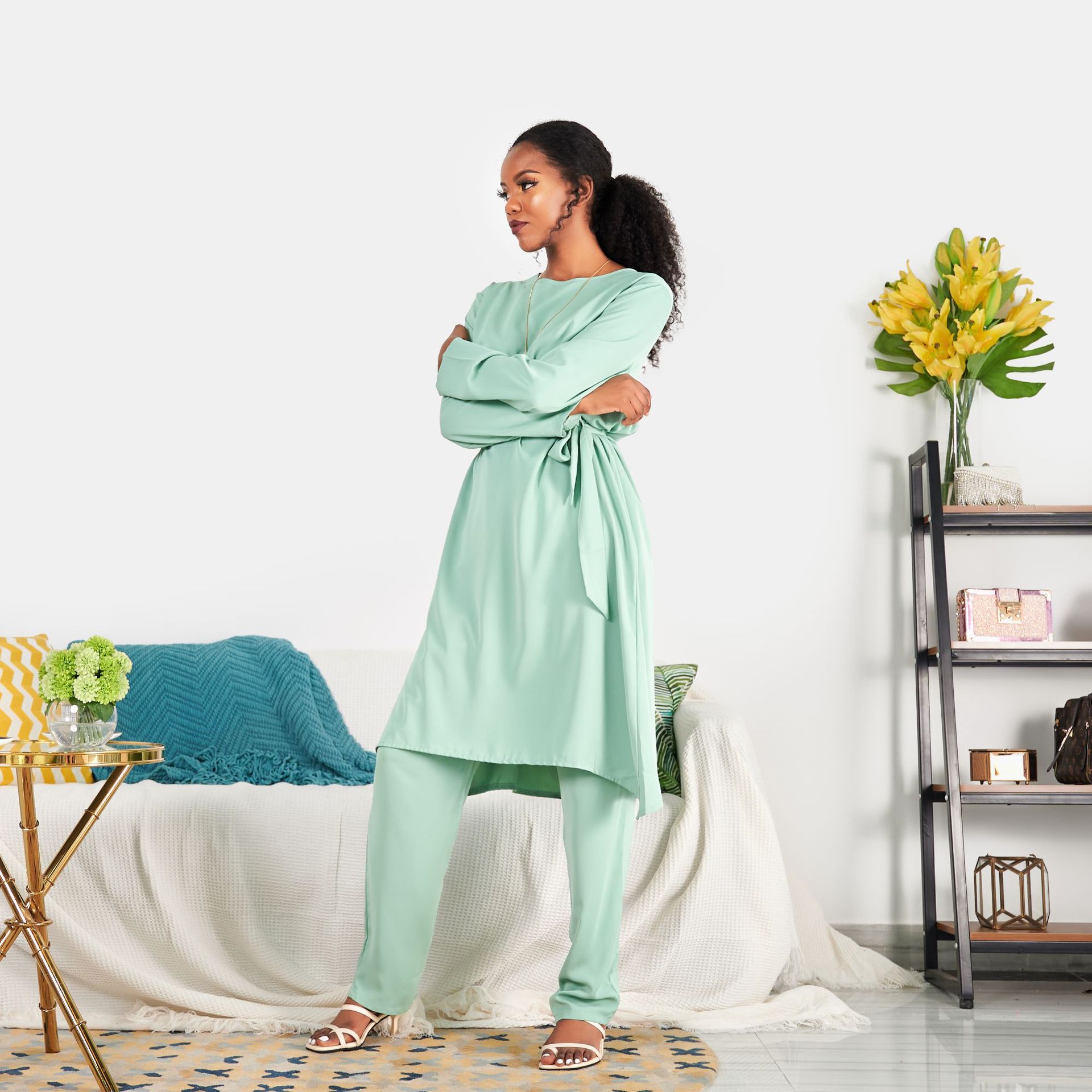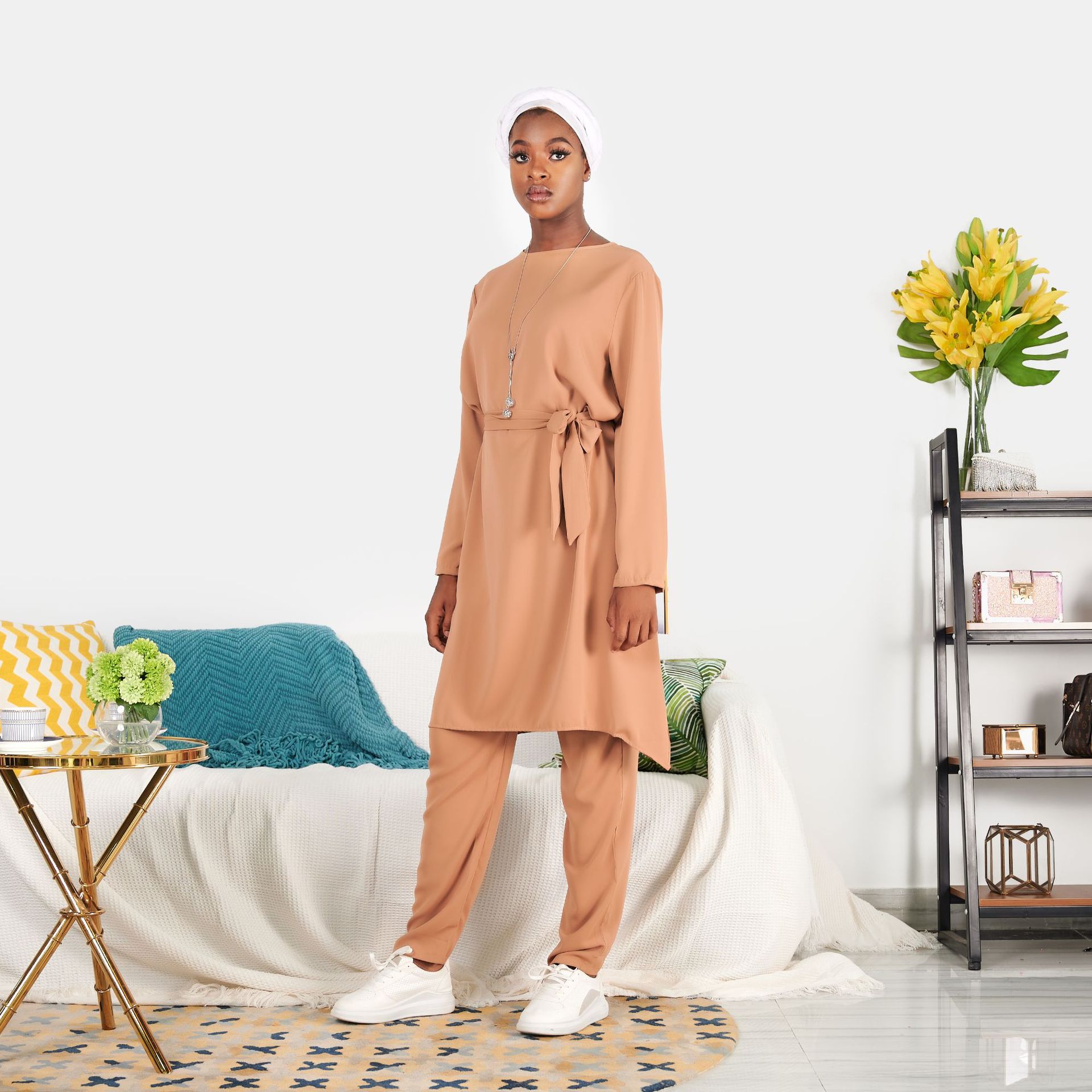 Modest Fashion Long Casual Muslim Turkey Loose Middle East Lady Blouse Set