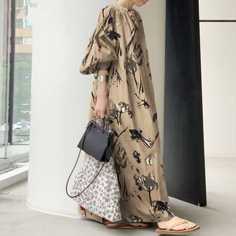You are here:Home » Products » Abaya / Maxi Dress » 2022 New Style Cotton And Linen Printing V-neck Simple Loose Casual Long Large Size Dress Long Skirt Women's Clothing
