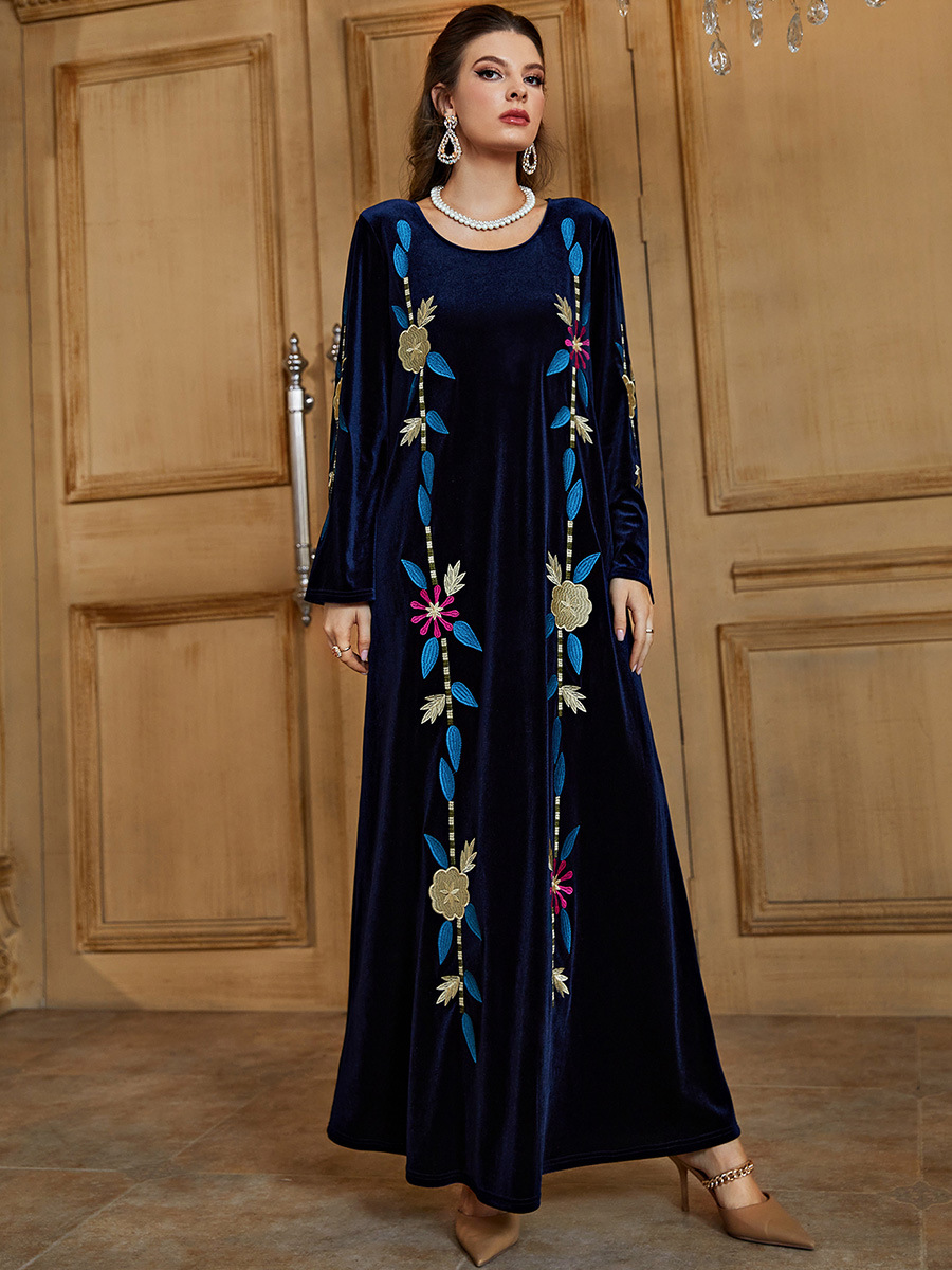 SIPO Custom Dubai Spring/Summer Dress Solid color beautifully embroidered dress gown Elegant Abaya