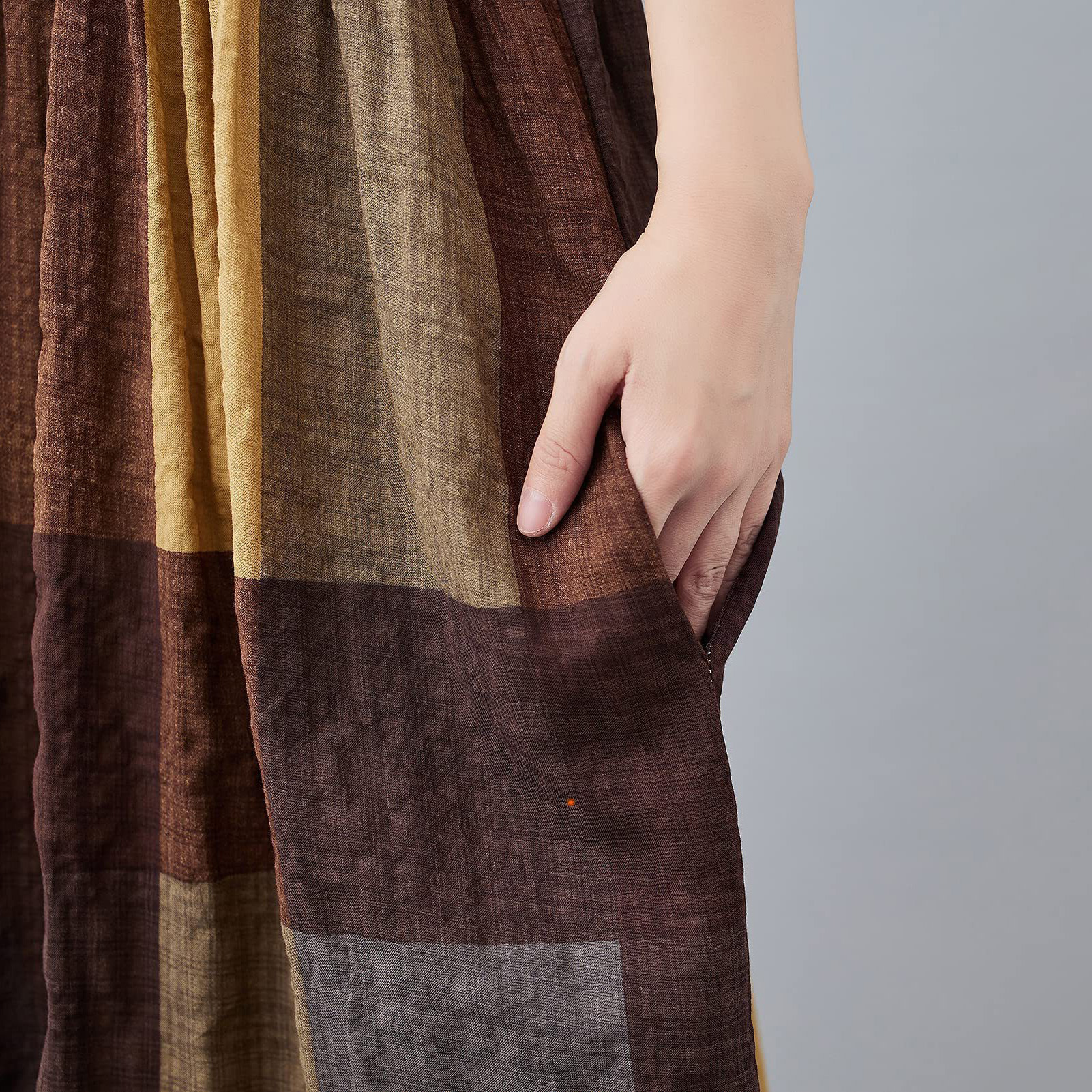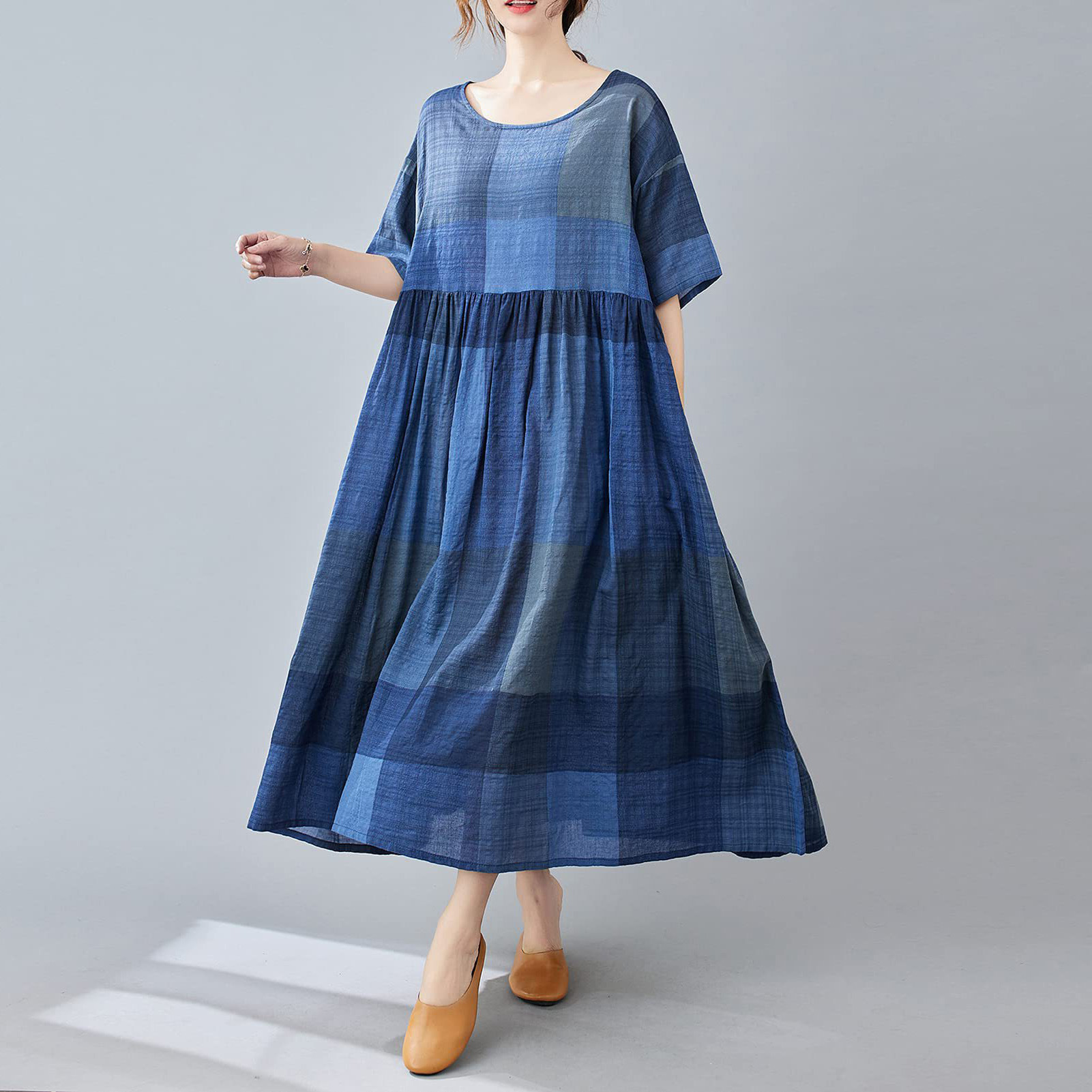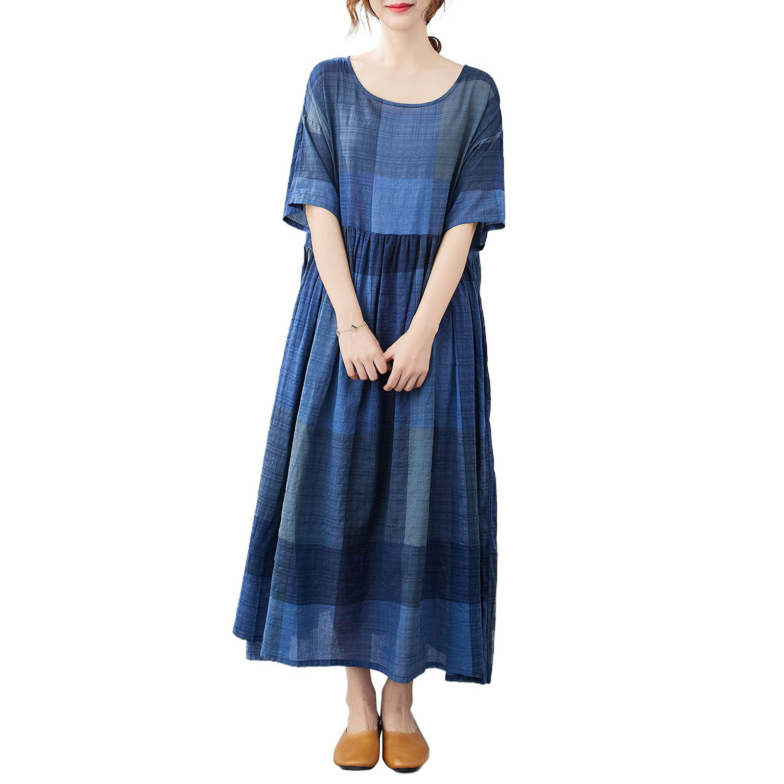 You are here:Home » Products » Abaya / Maxi Dress » 2022 Summer Check Pattern Plus Size Women's Retro Ethnic Style Clothes Casual Cotton Loose Big Swing Dress Long Skirt