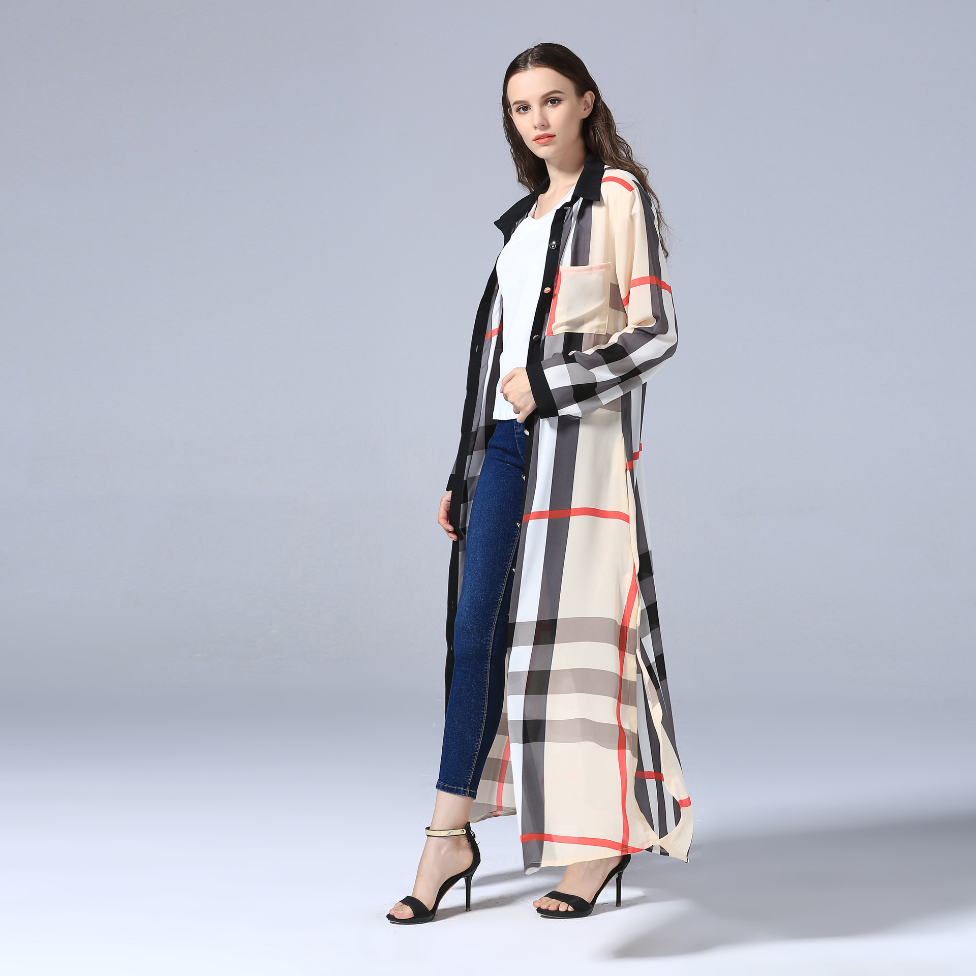 You are here:Home » Products » Abaya / Maxi Dress » AliExpress New Fashion Long-sleeved Plus Size Women's Slim Checkered Full Button Cardigan Long Dress