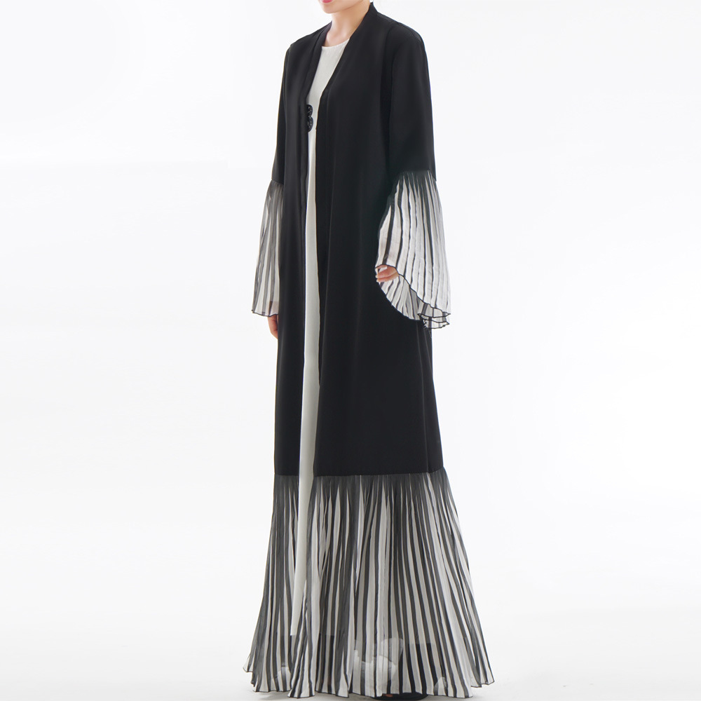 Soft Lace Swing Long Sleeves Open Abaya Turkish Women Islamic Clothing Muslim Dresses