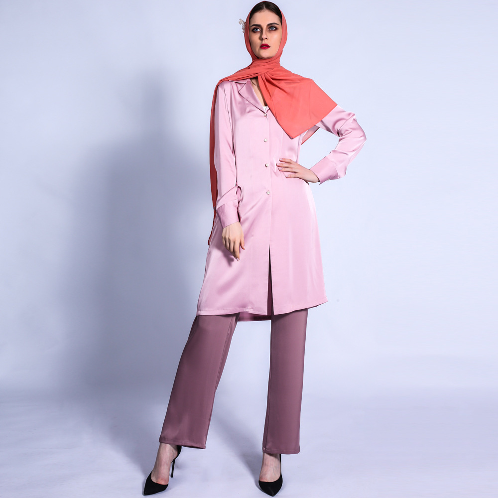 Autumn Color Matching Suit Collar Pakistan Two-piece Jacket + Pants Muslim Women's Suit in Stock