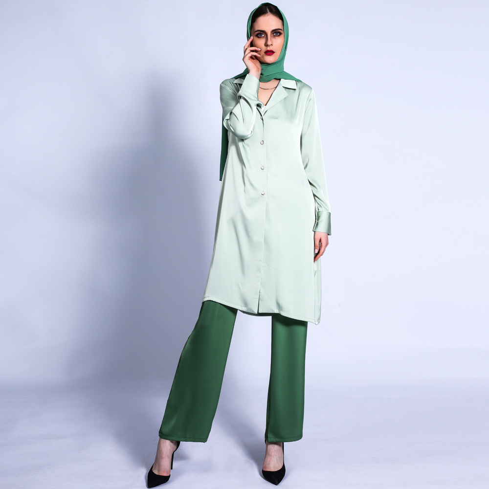 You are here:Home » Products » Abaya / Maxi Dress » Autumn Color Matching Suit Collar Pakistan Two-piece Jacket + Pants Muslim Women's Suit in Stock
