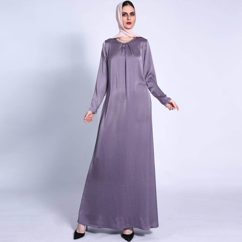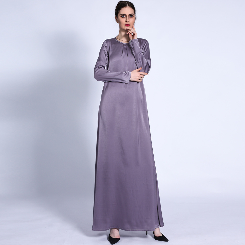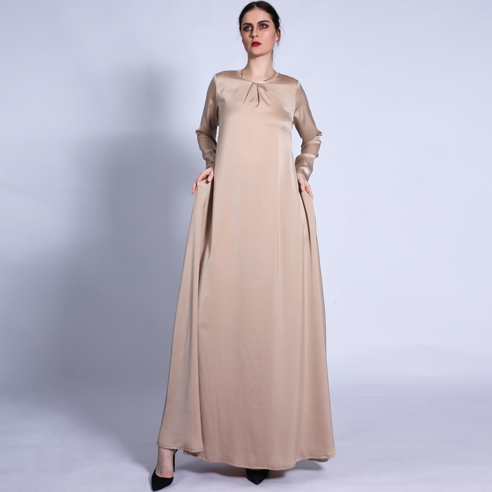Autumn Solid Color Loose Waist Dress with A-line Basic Long Skirt Muslim Female Abaya Spot