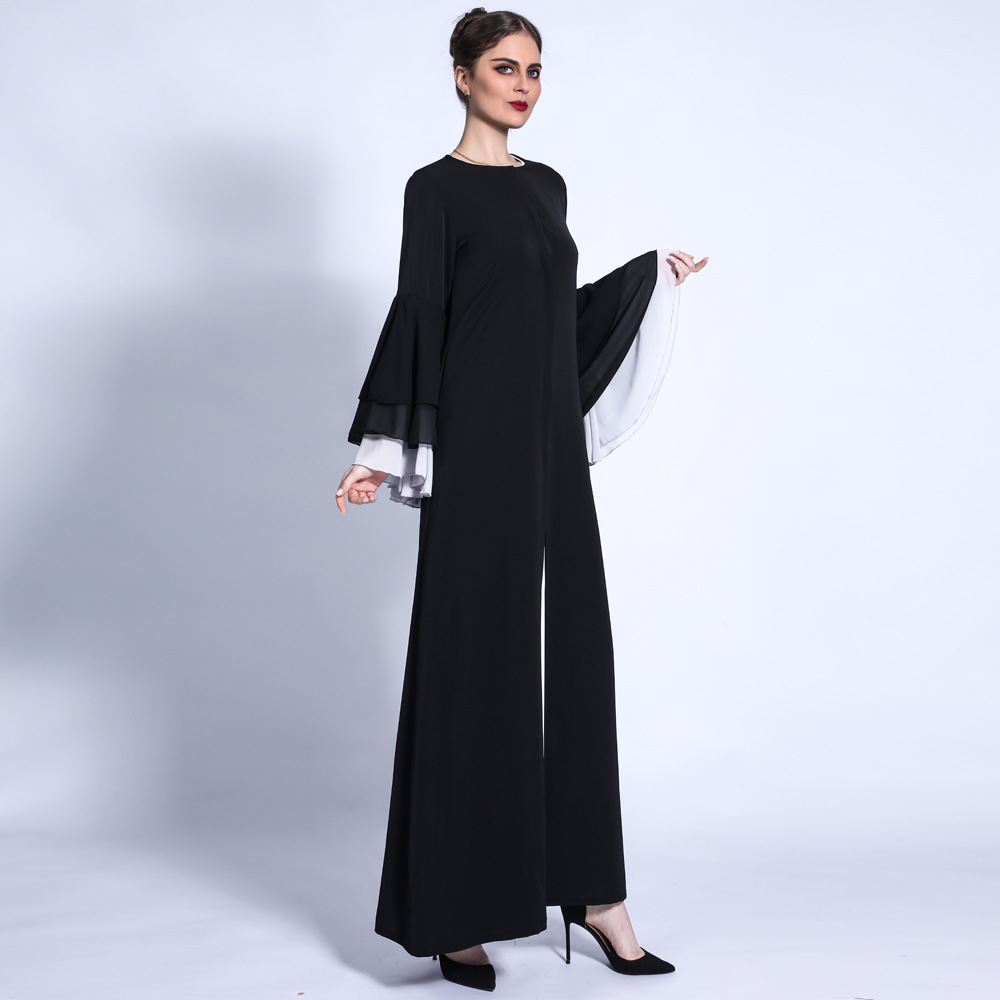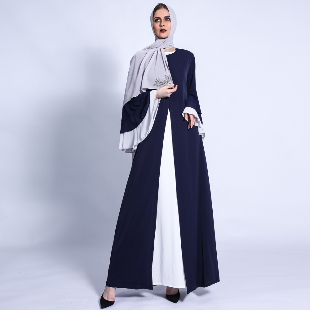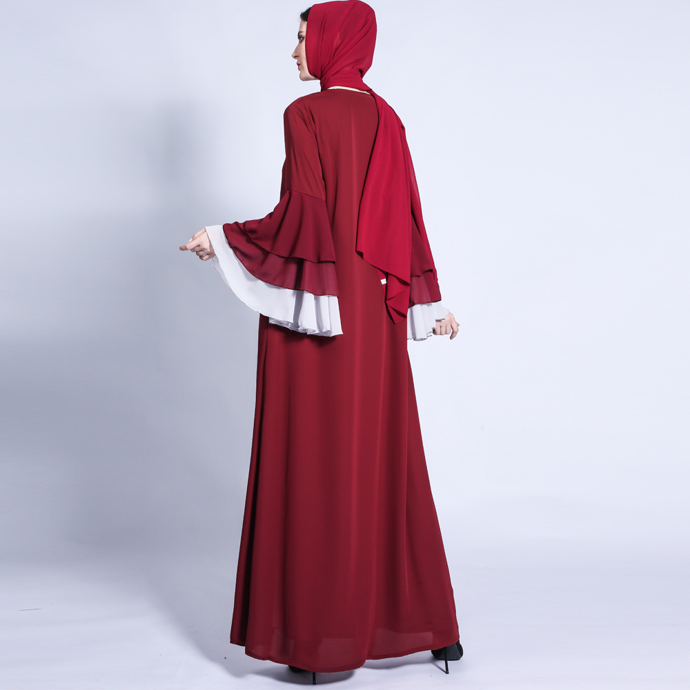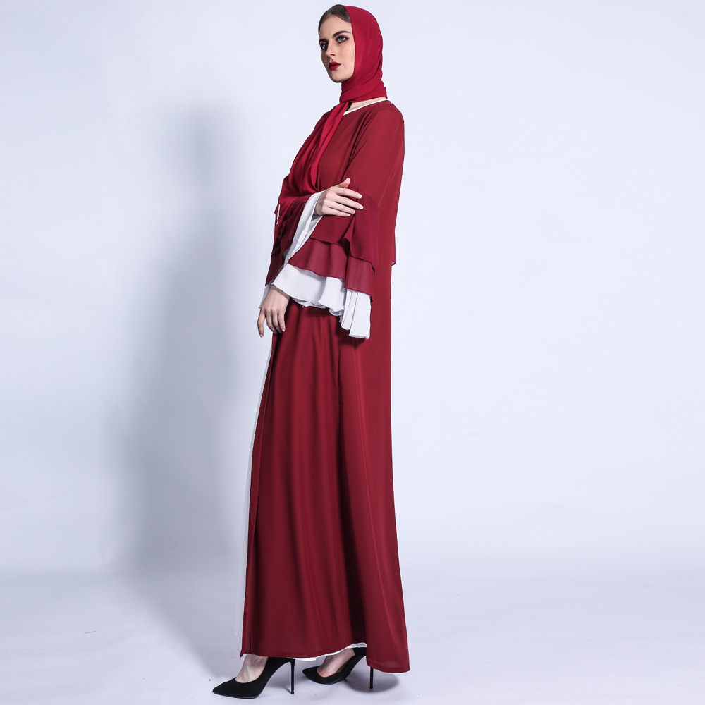 You are here:Home » Products » Abaya / Maxi Dress » Autumn and winter new Muslim women's long skirt color matching three-layer chiffon wave sleeves with open dress