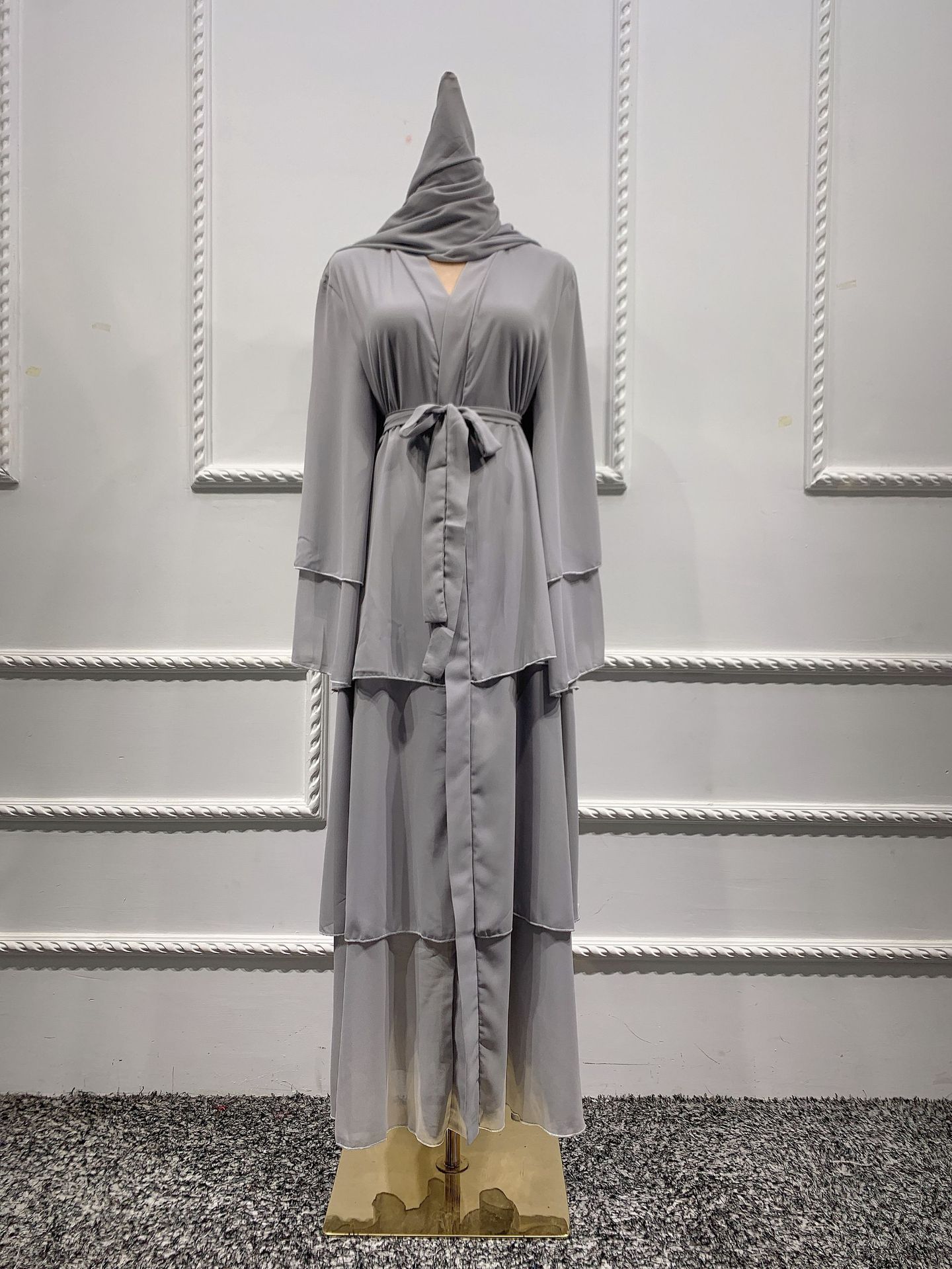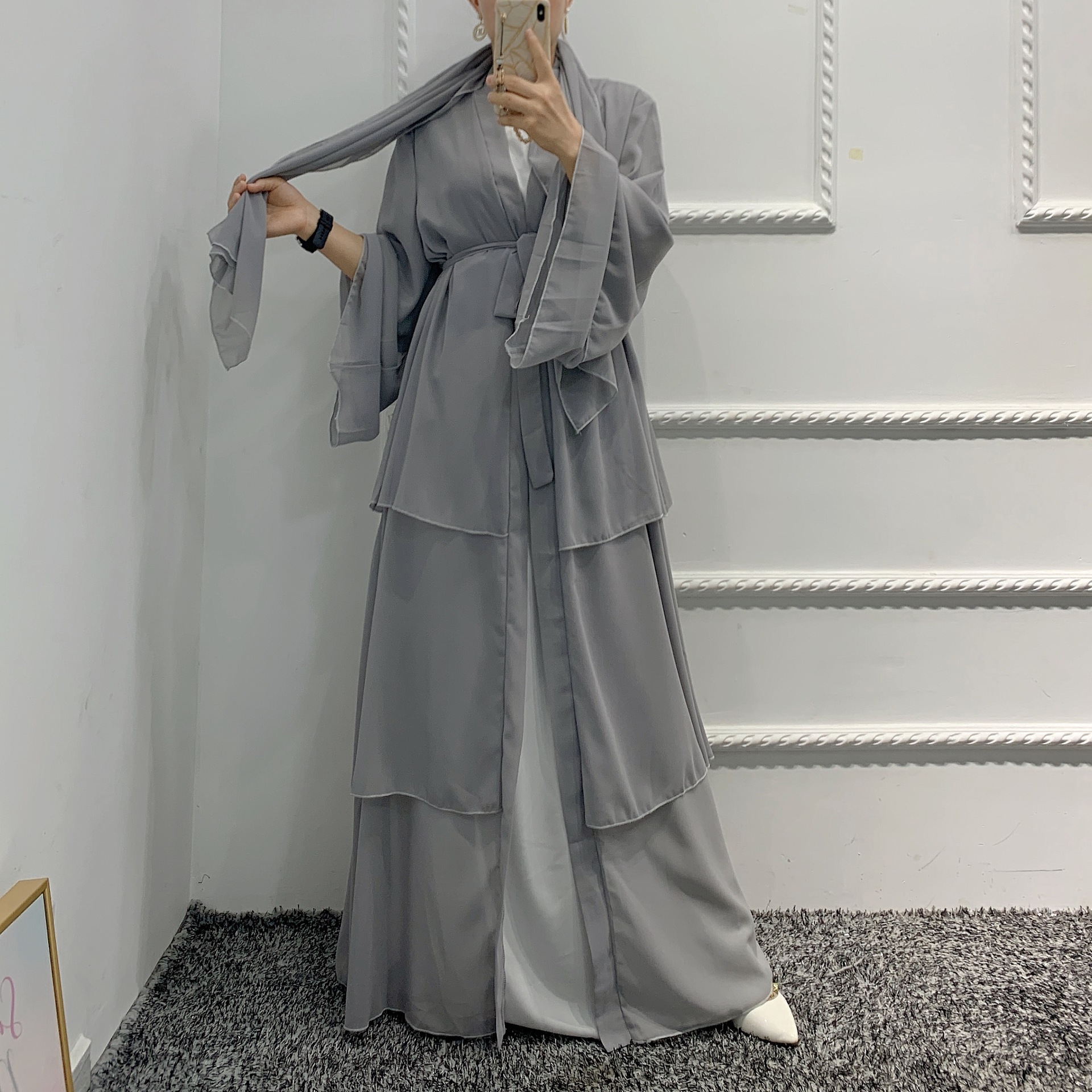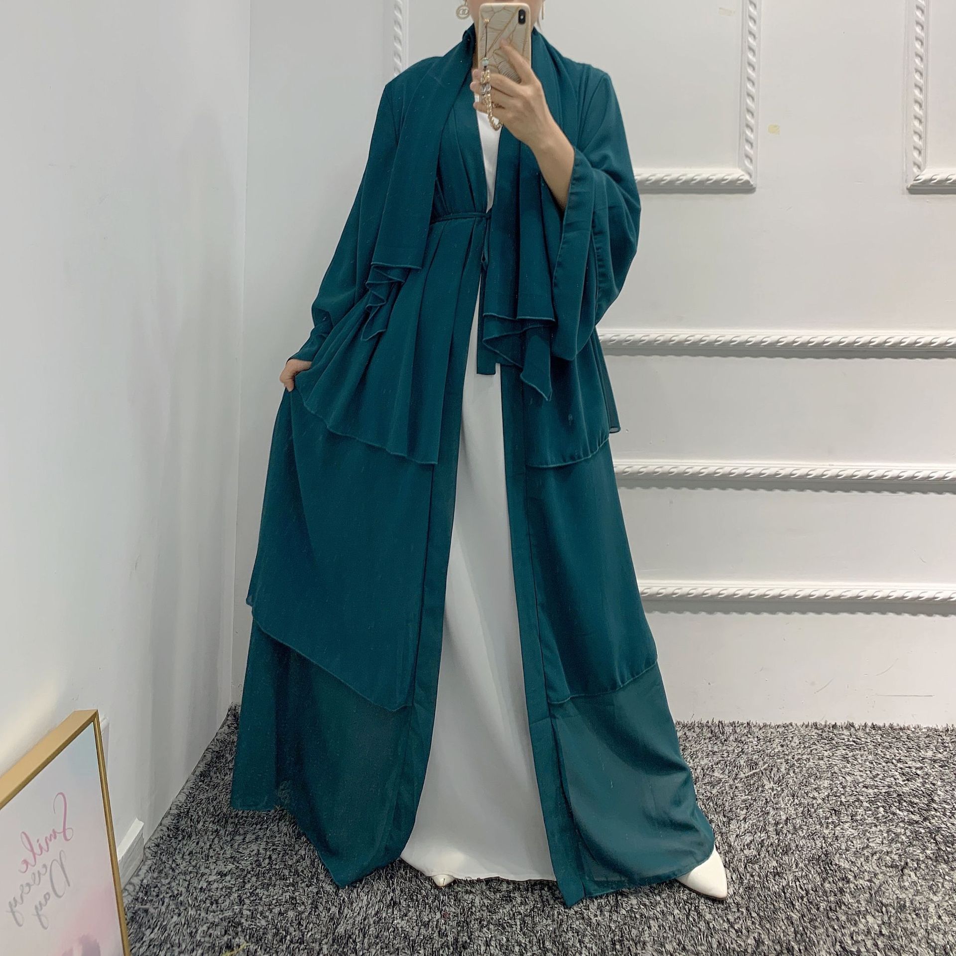 SIPO Demure Custom Modest Women Solid Color Abaya Women Muslim Dress Femme Two Pieces Abaya Set High Quality Maxi Dress