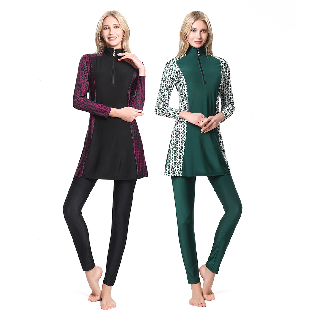 Conservative Swimsuit Three-piece Suit, Customizable Zippered Hooded Tight-fitting Swimsuit