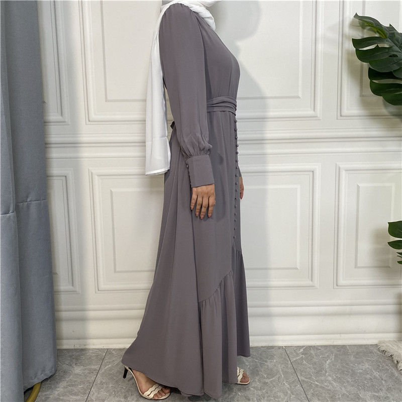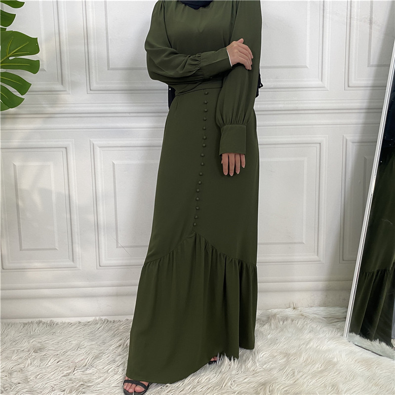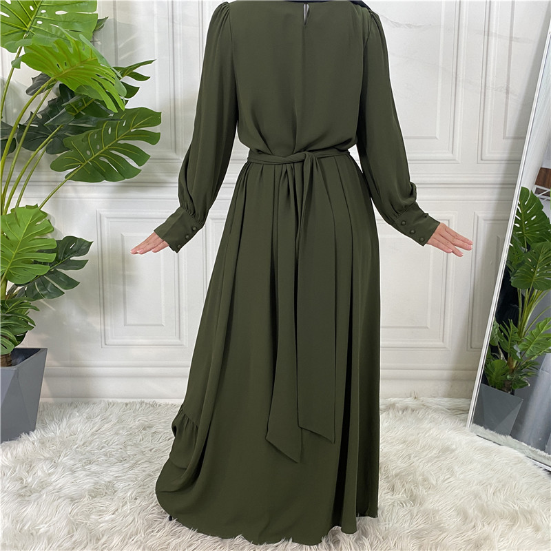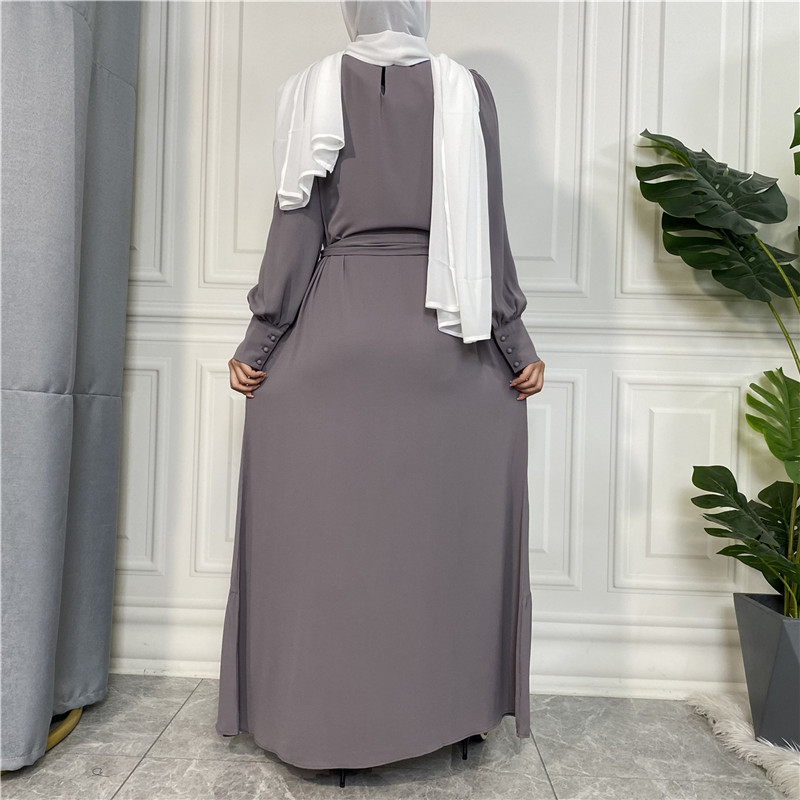 Cross-border Exclusively for The New Fashion Women's Solid Color Stitching Big Put on Muslim Dress