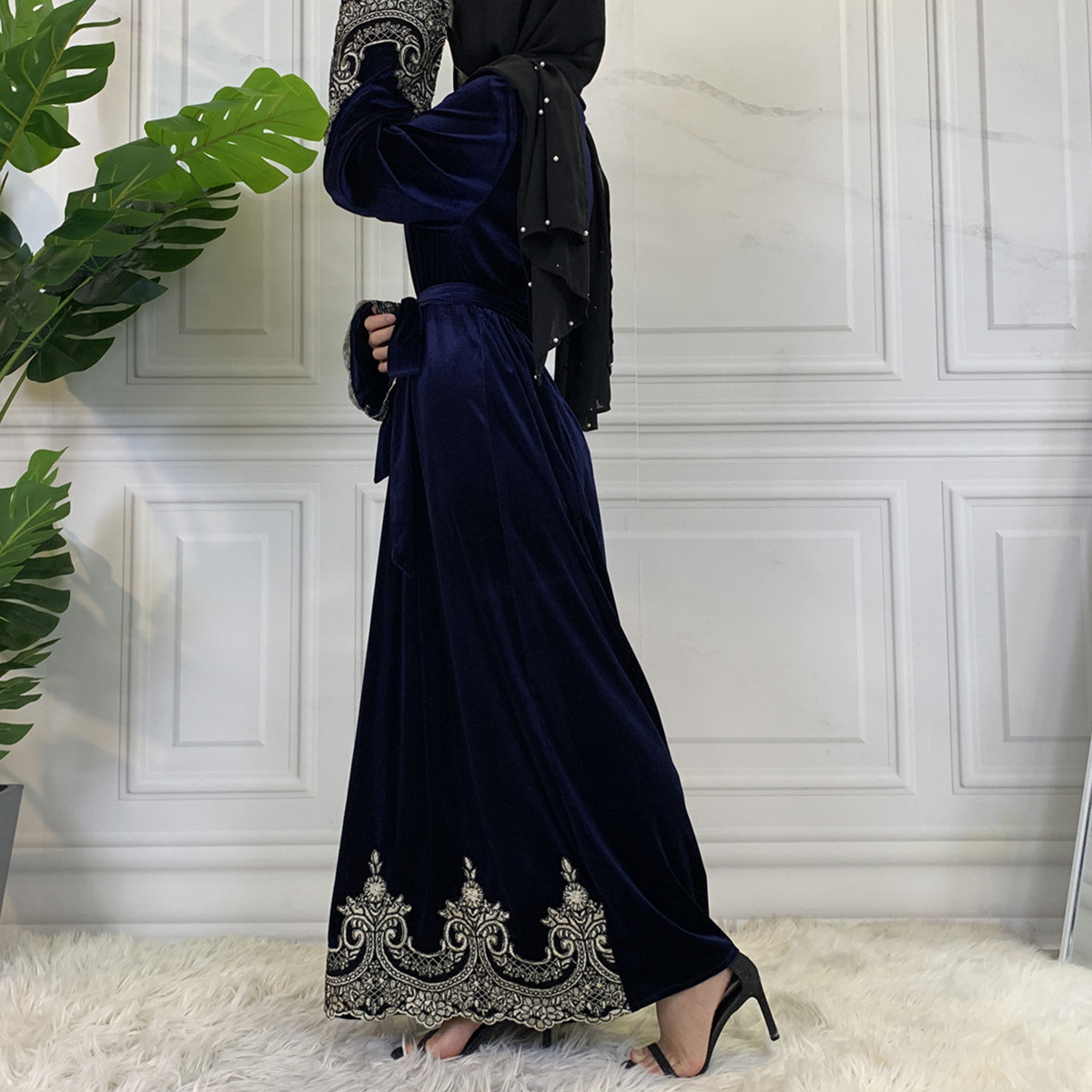 You are here:Home » Products » Abaya / Maxi Dress » Cross-border New Muslim Autumn And Winter Fashion Lace Stitching Gold Velvet Middle Eastern Women's Dress