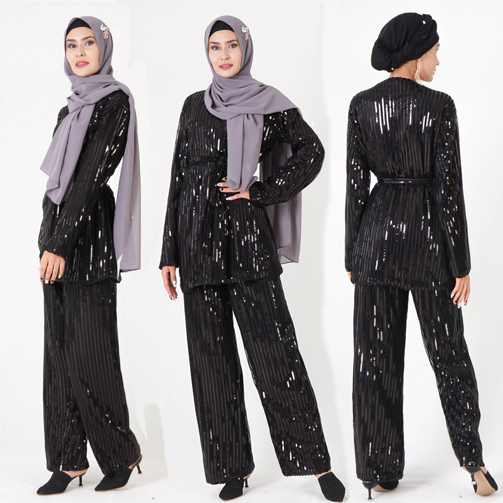 Women Suit Dubai Thobe 2022 Top 2pieces Burka Maxi Pants Islamic Clothing Kurti Prayer Two Piece Printing Modest Muslim Blouse Set