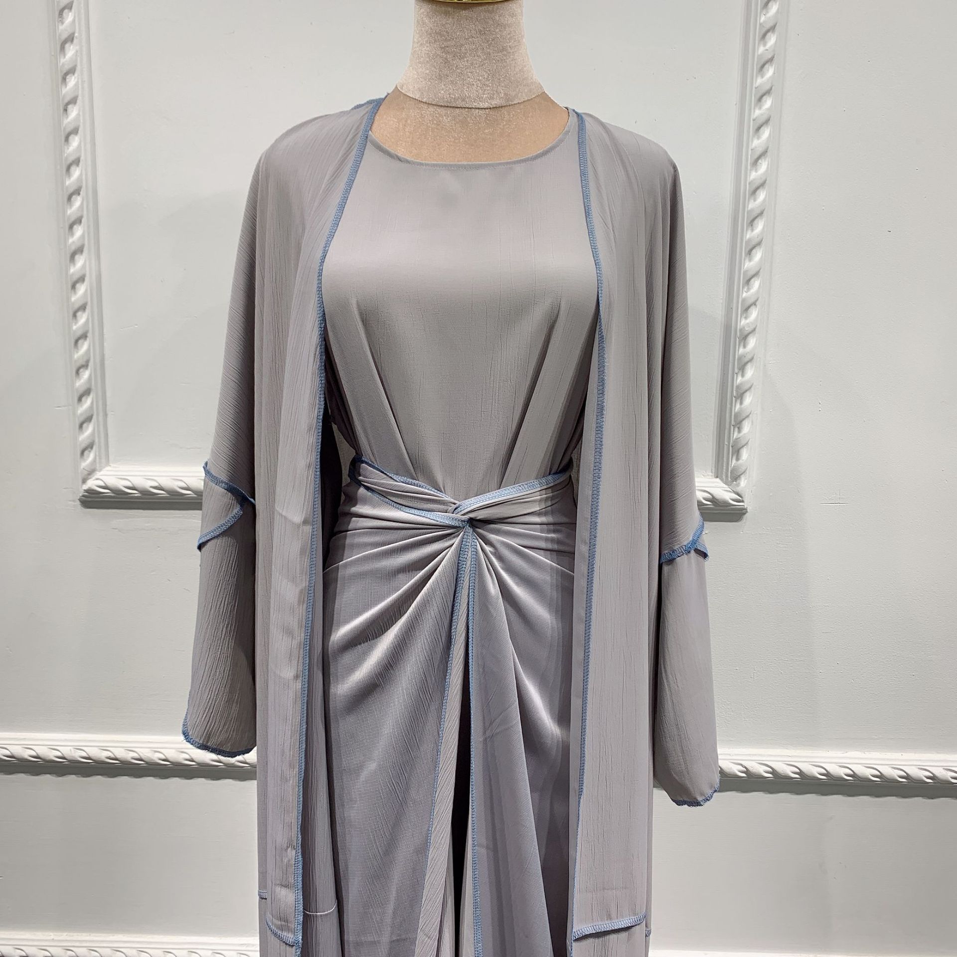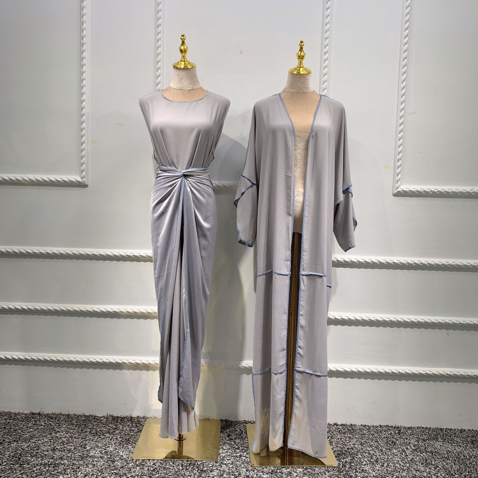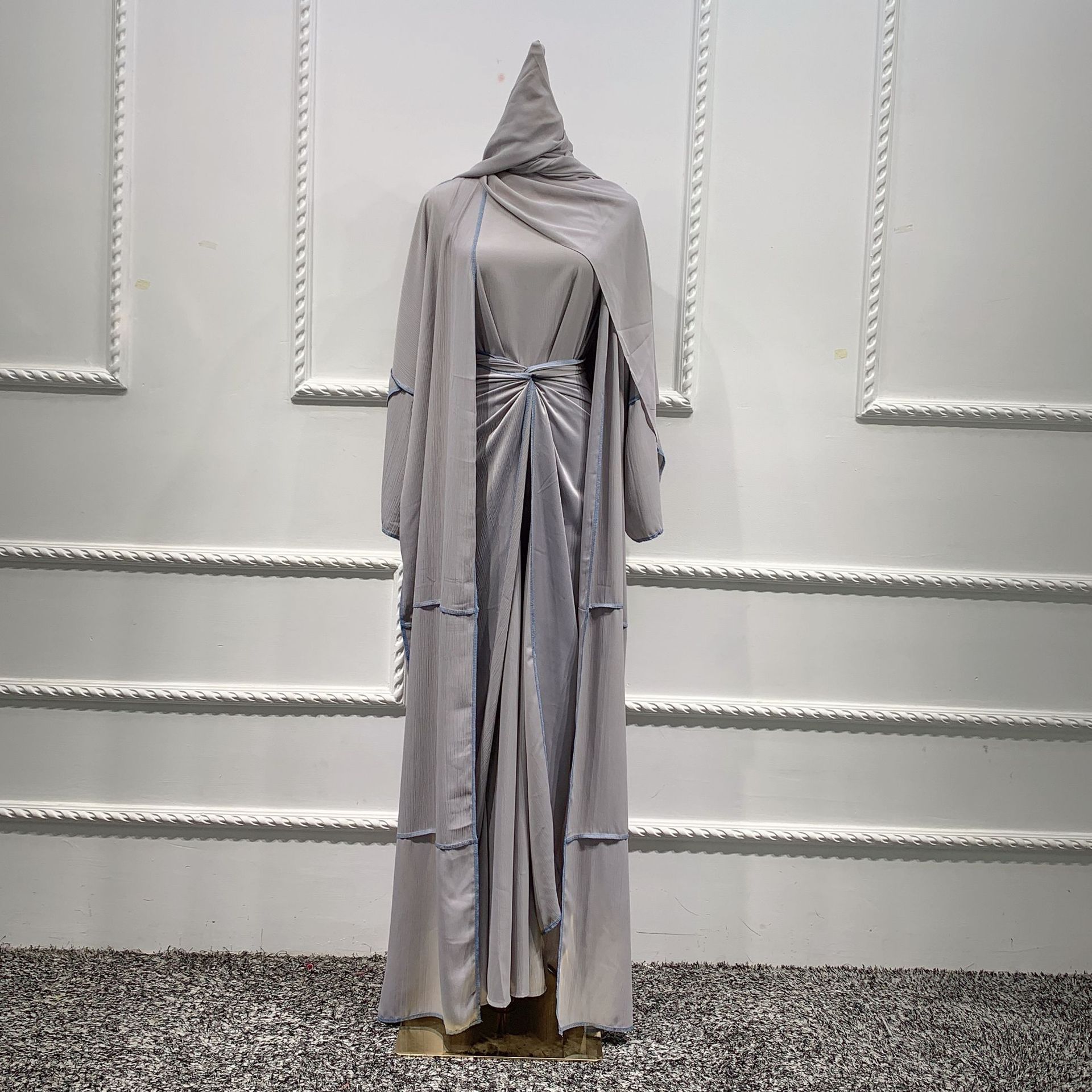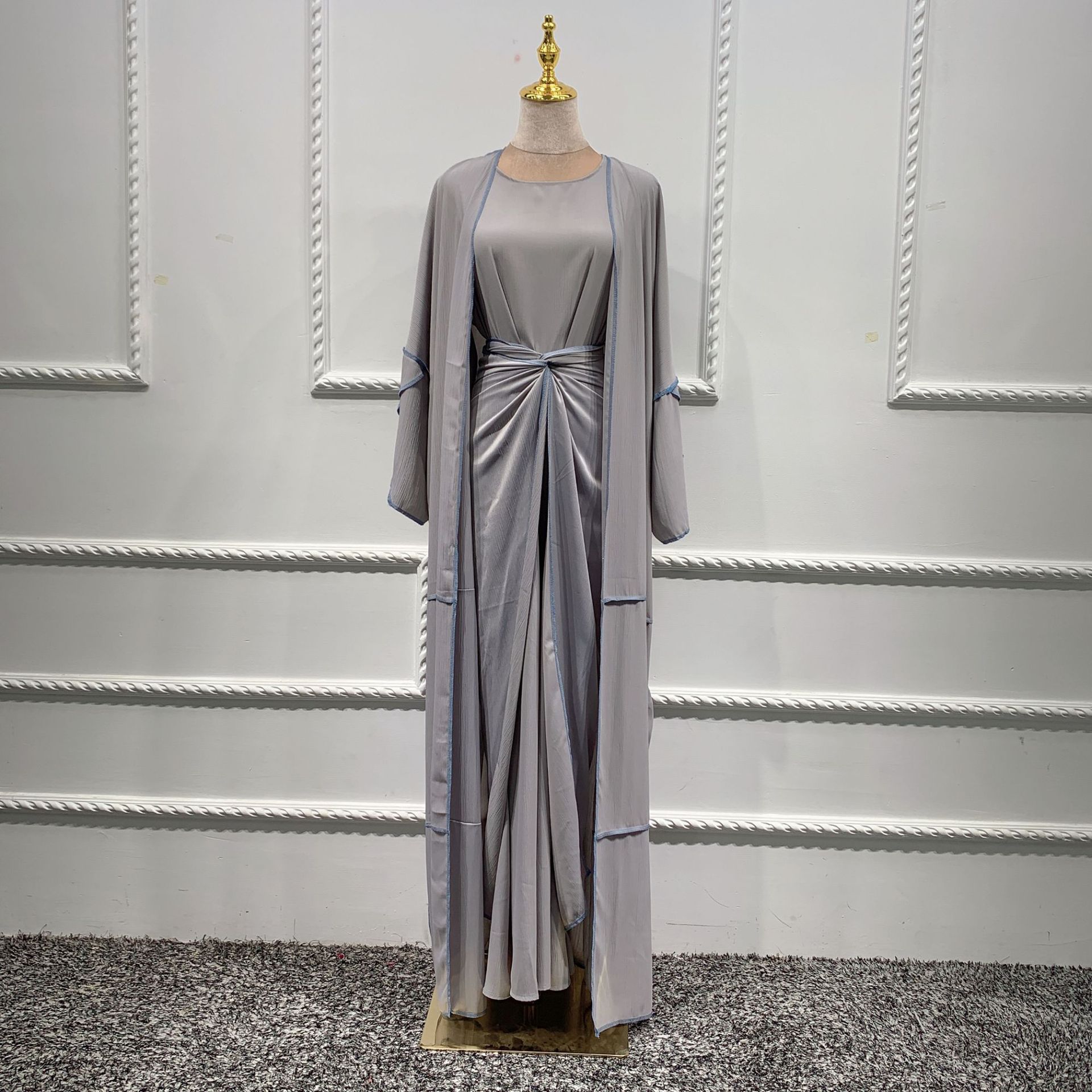 SIPO Demure Custom Modest Women Solid Color Abaya Women Muslim Dress Femme Two Pieces Abaya Set High Quality Maxi Dress