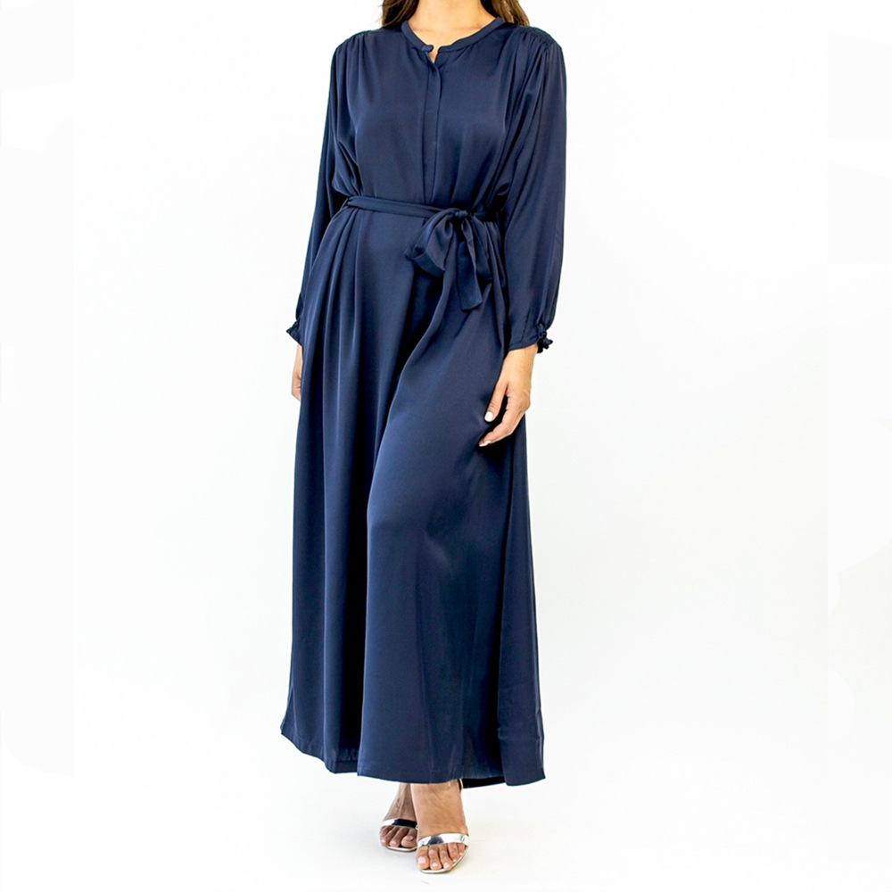 SIPO 2024 Latest Traditional Muslim Luxury Satin Closed Abaya with Embellished Lace Cuffs