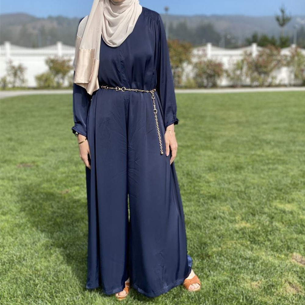 SIPO Demure Custom Modest Women Solid Color Abaya Women Muslim Dress Femme Two Pieces Abaya Set High Quality Maxi Dress