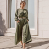 2022 Muslim Loose Mid-length Striped Long-sleeved Cotton Stitching Cardigan Cotton And Linen Temperament Commuter Dress