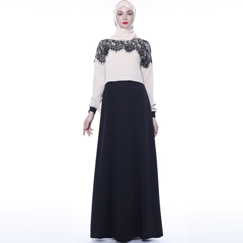 Elegant Color Matching Muslim Islamic Women's Lace Dress Foreign Trade Cross-border Spot Abaya