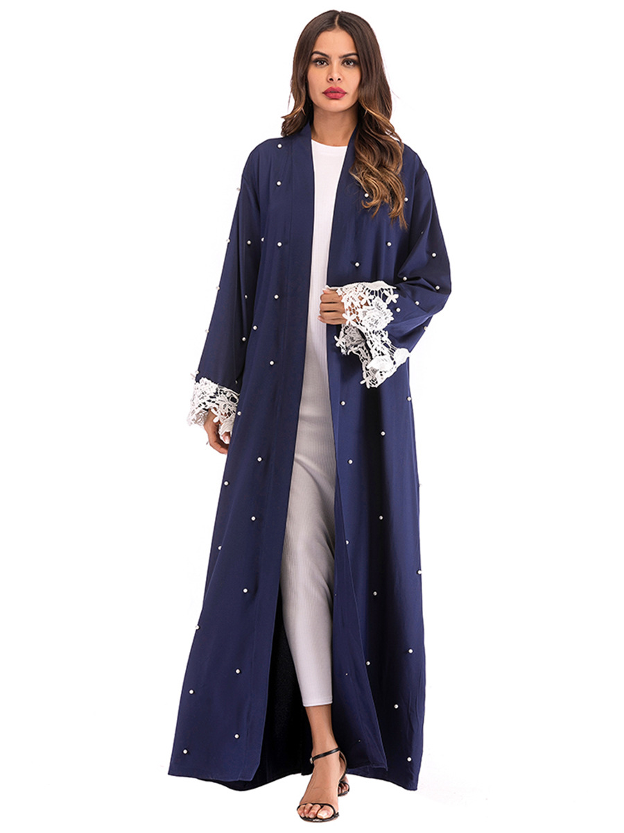 You are here:Home » Products » Abaya / Maxi Dress » European And American Muslim Beaded Lace Stitching Cardigan Lace Robe Women