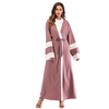 You are here:Home » Products » Abaya / Maxi Dress » European And American Muslim Robe Hot Sale Stitching Striped Long Skirt Women with Turban Middle Eastern Arab Cardigan