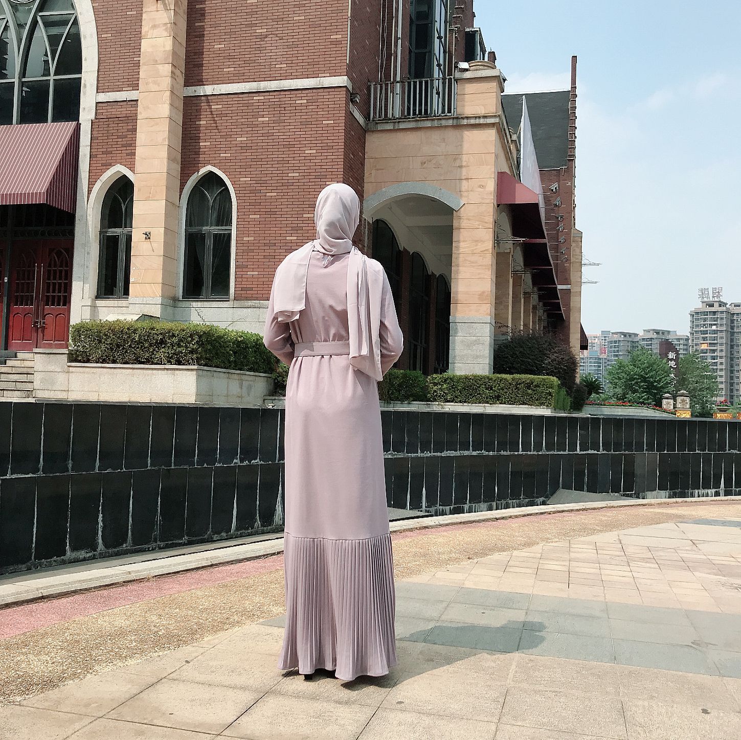 Excellent Pleated High Quality Simple Design Fashion Shirt Collar Muslim Dresses Women