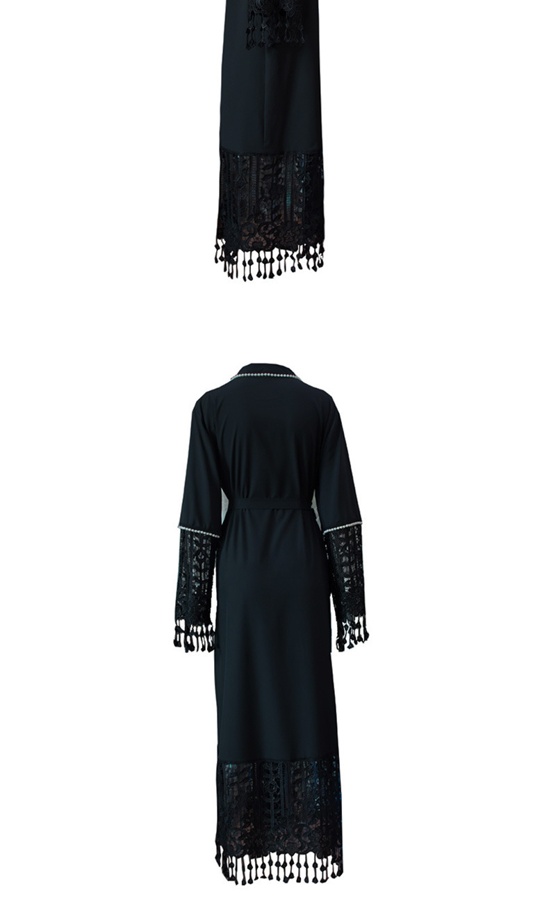 Fashion Plus Size Fashion Beaded Lace Hollow Lace Stitching Cardigan Fringed Robe