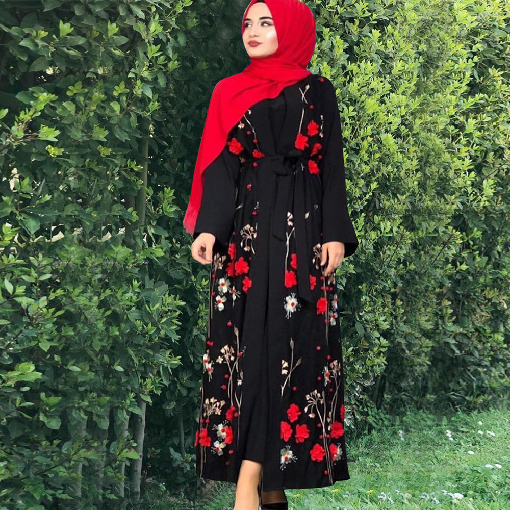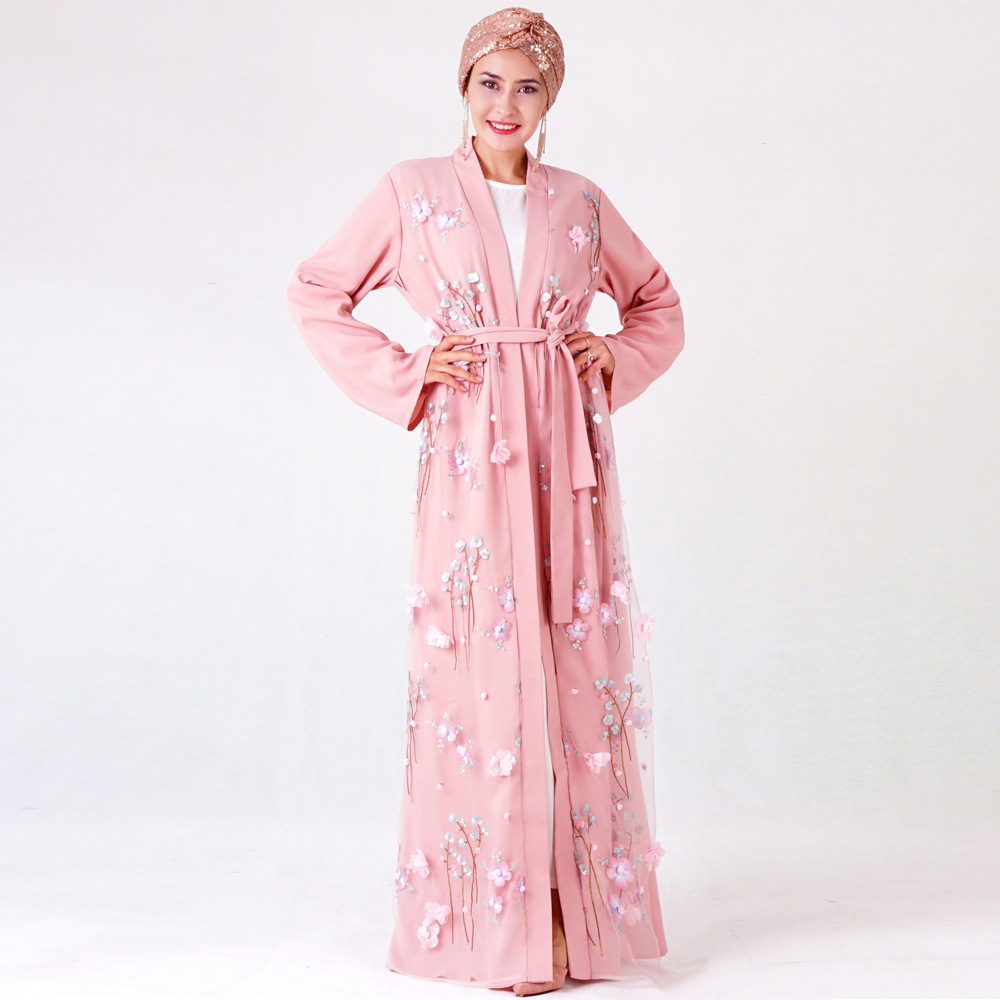 Floral Embroidery Flower Tulle Opened Open Cardigan Abaya Muslim Islamic Abaya
