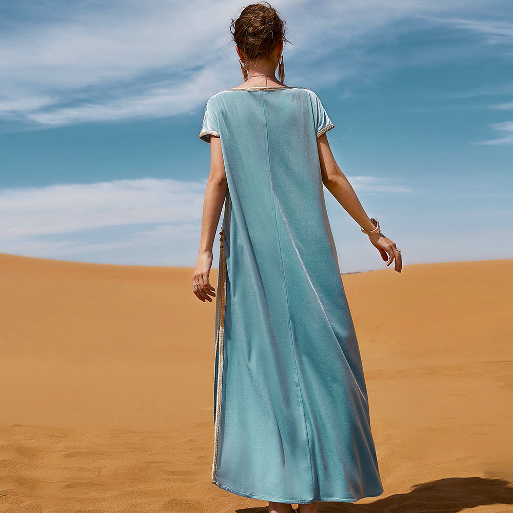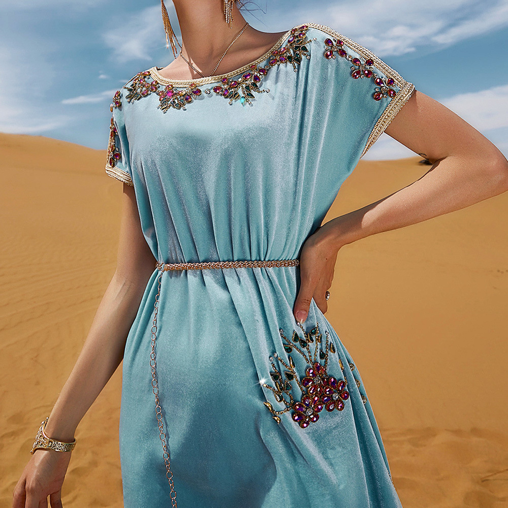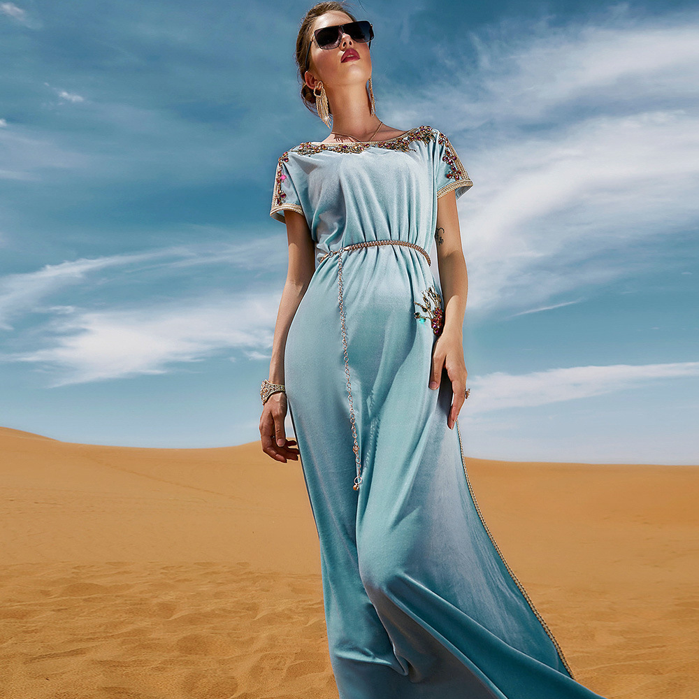 Handmade Velvet Robe Muslim Dubai Modest Fashion Middle East Islamic Maxi Dresses Loose Abaya