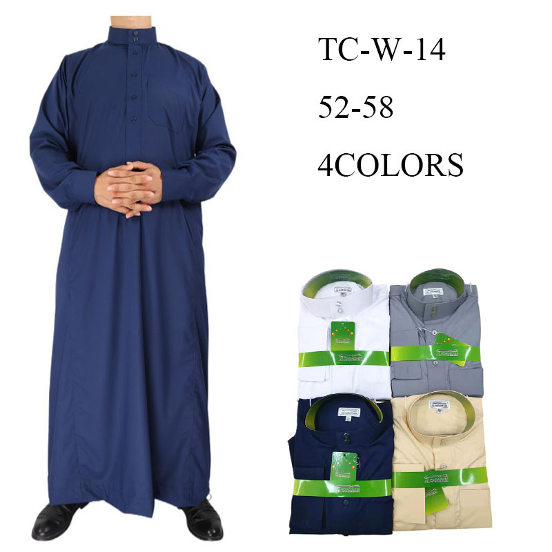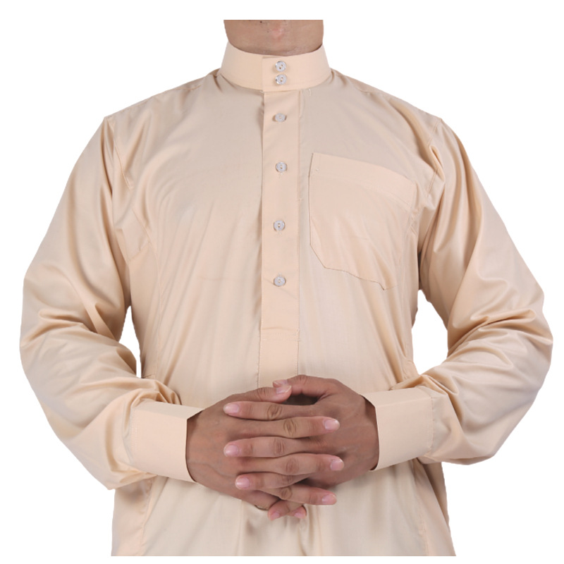 High End Muslim Islamic Arabic Men's Wholesale Casual Robe Stand Collar Thobe