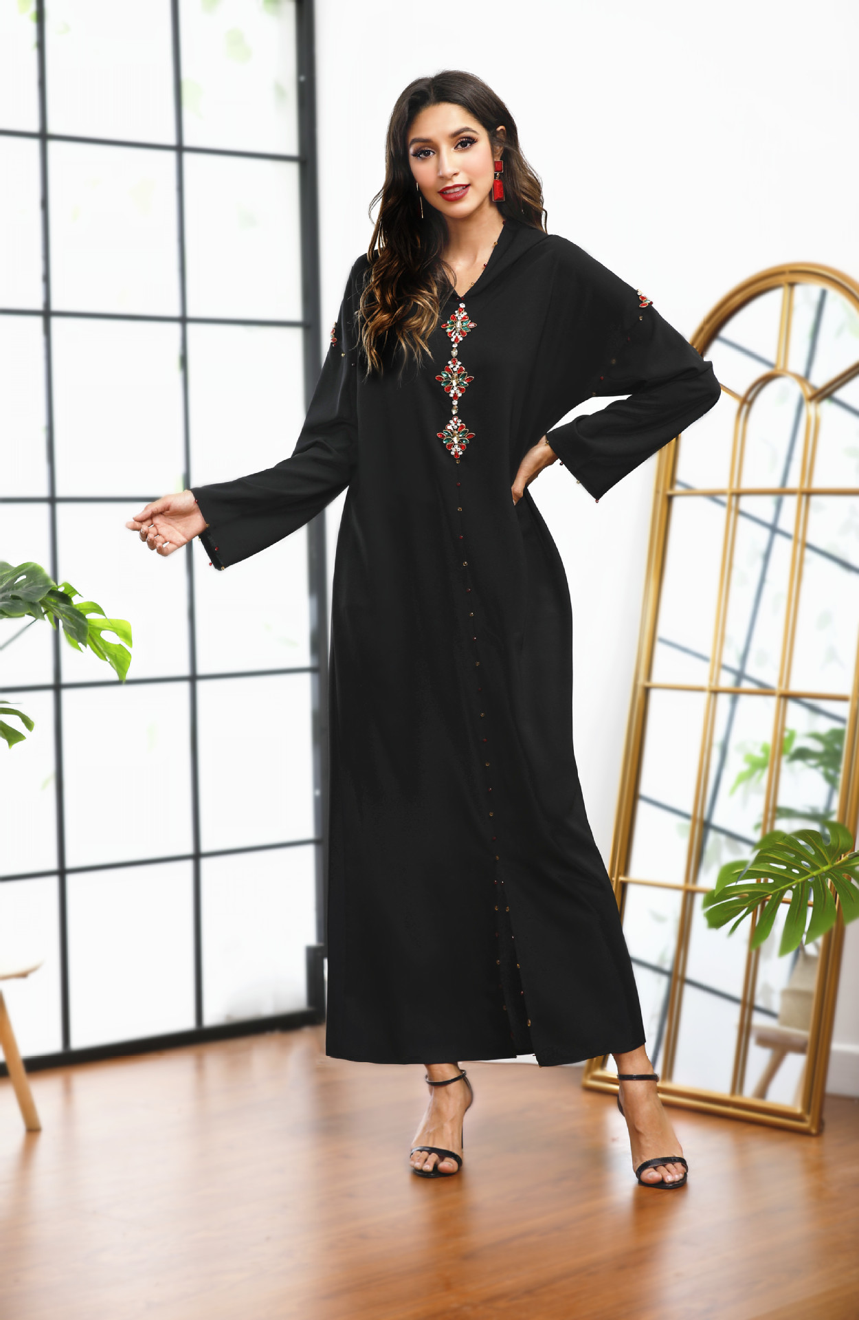 SIPO Custom Dubai Spring/Summer Dress Solid color beautifully embroidered dress gown Elegant Abaya