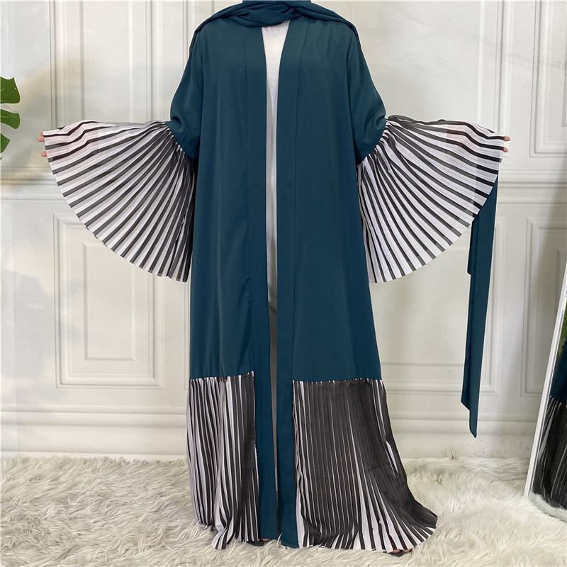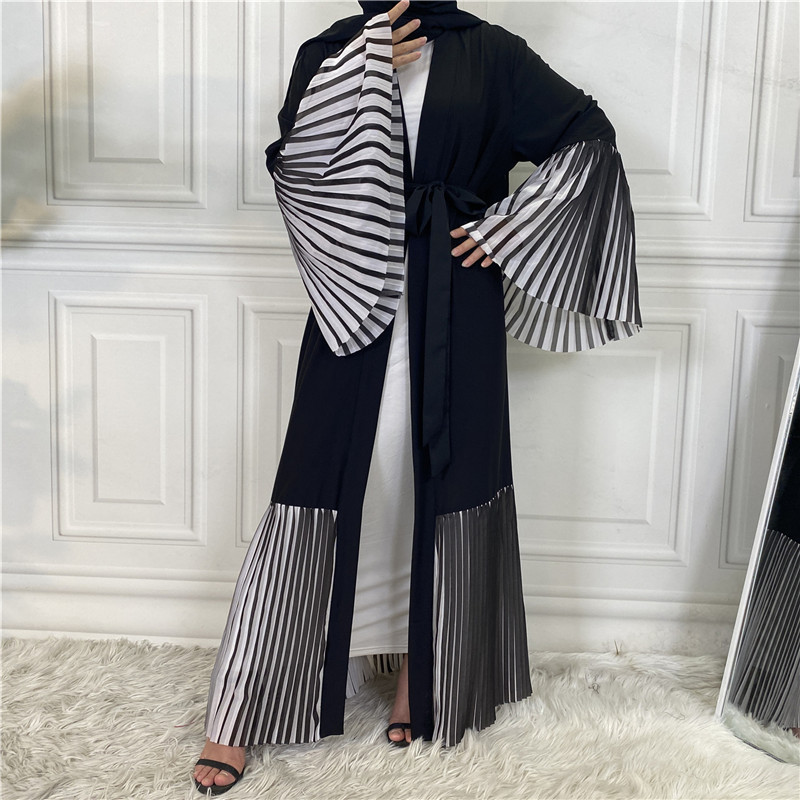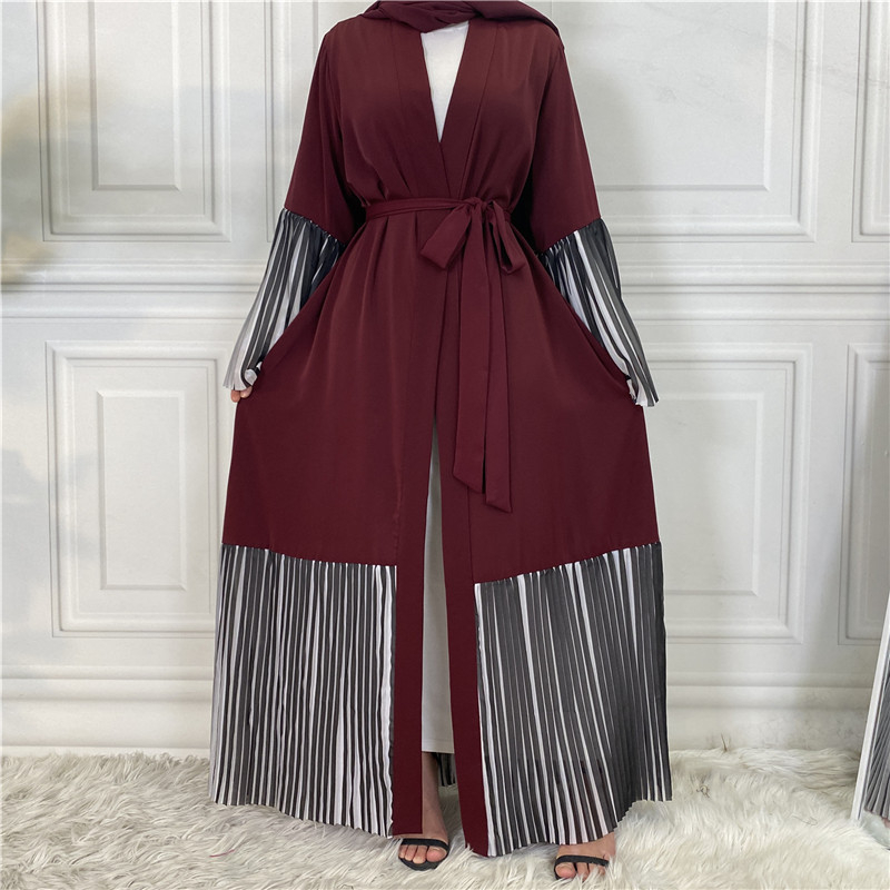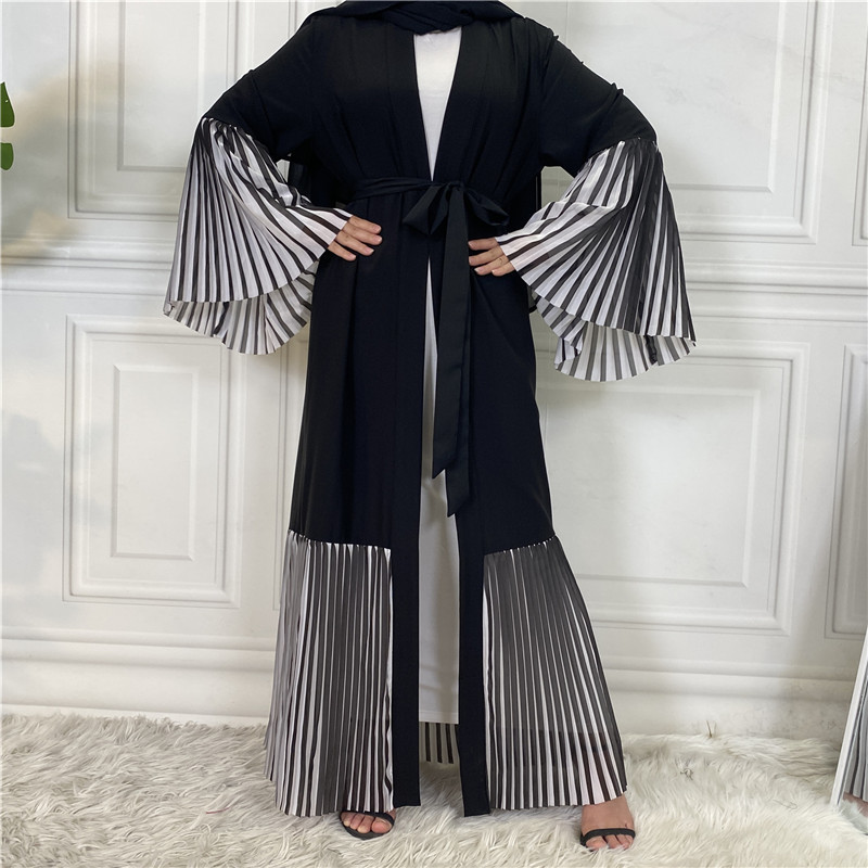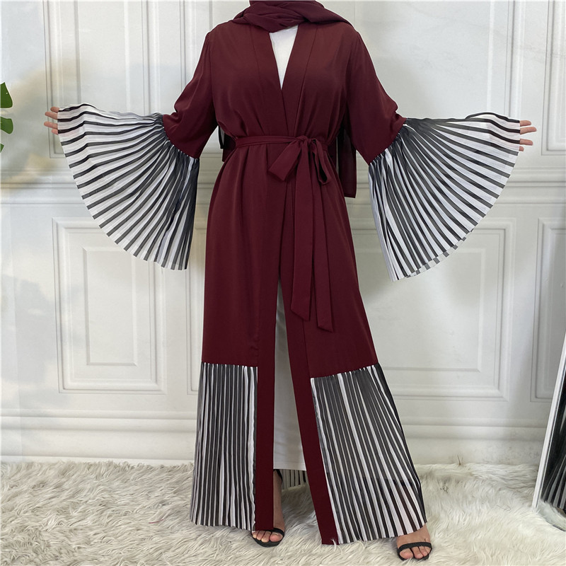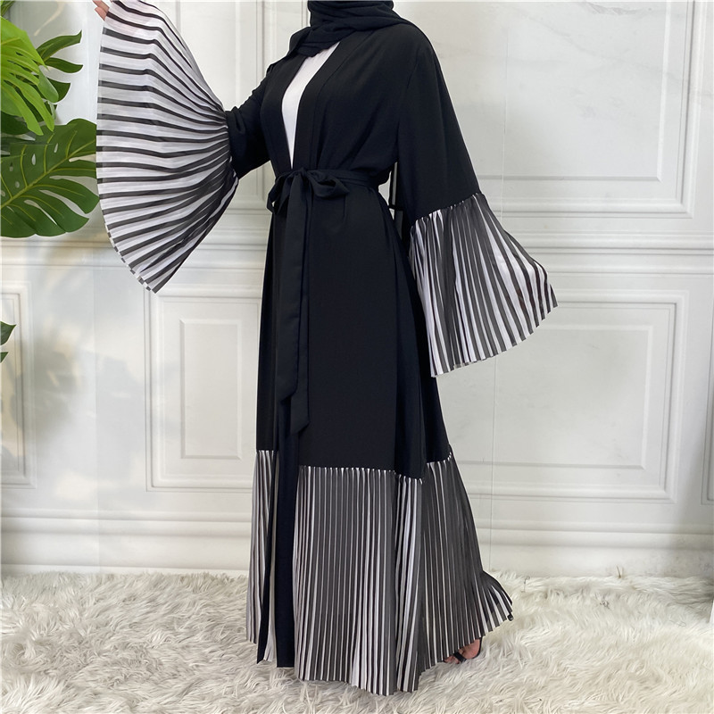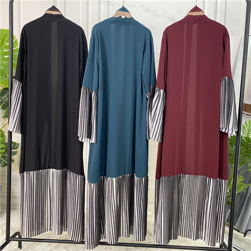 Hot Sale Middle East Muslim Long-sleeved Stitching Pleated Big Swing Robe Female Arab Long Cardigan