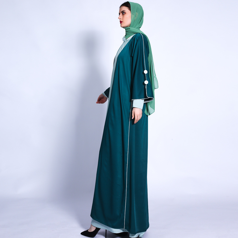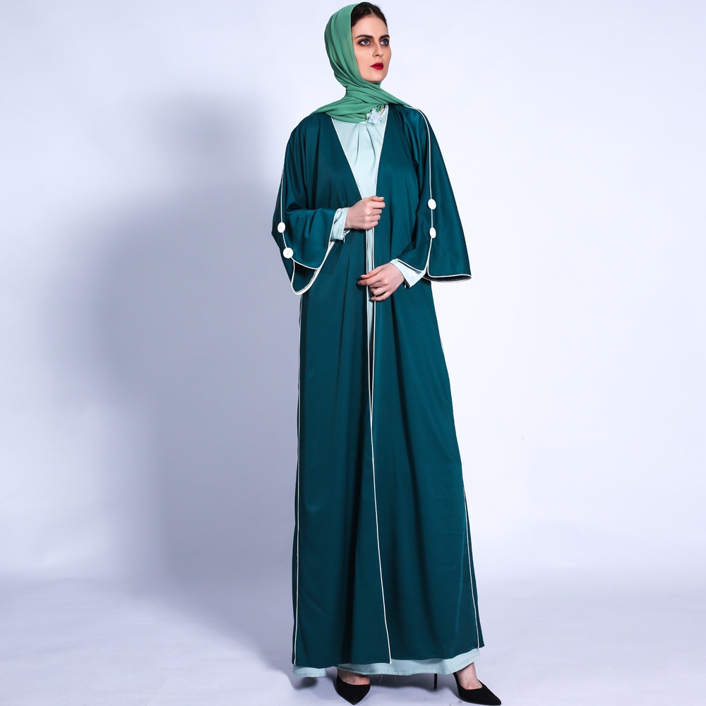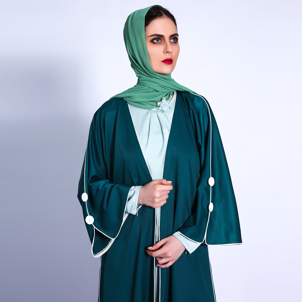 INS New Card White Ribs with Muslim Women's Solid Color Loose Waist Cardigan Abaya Cross-border 1307