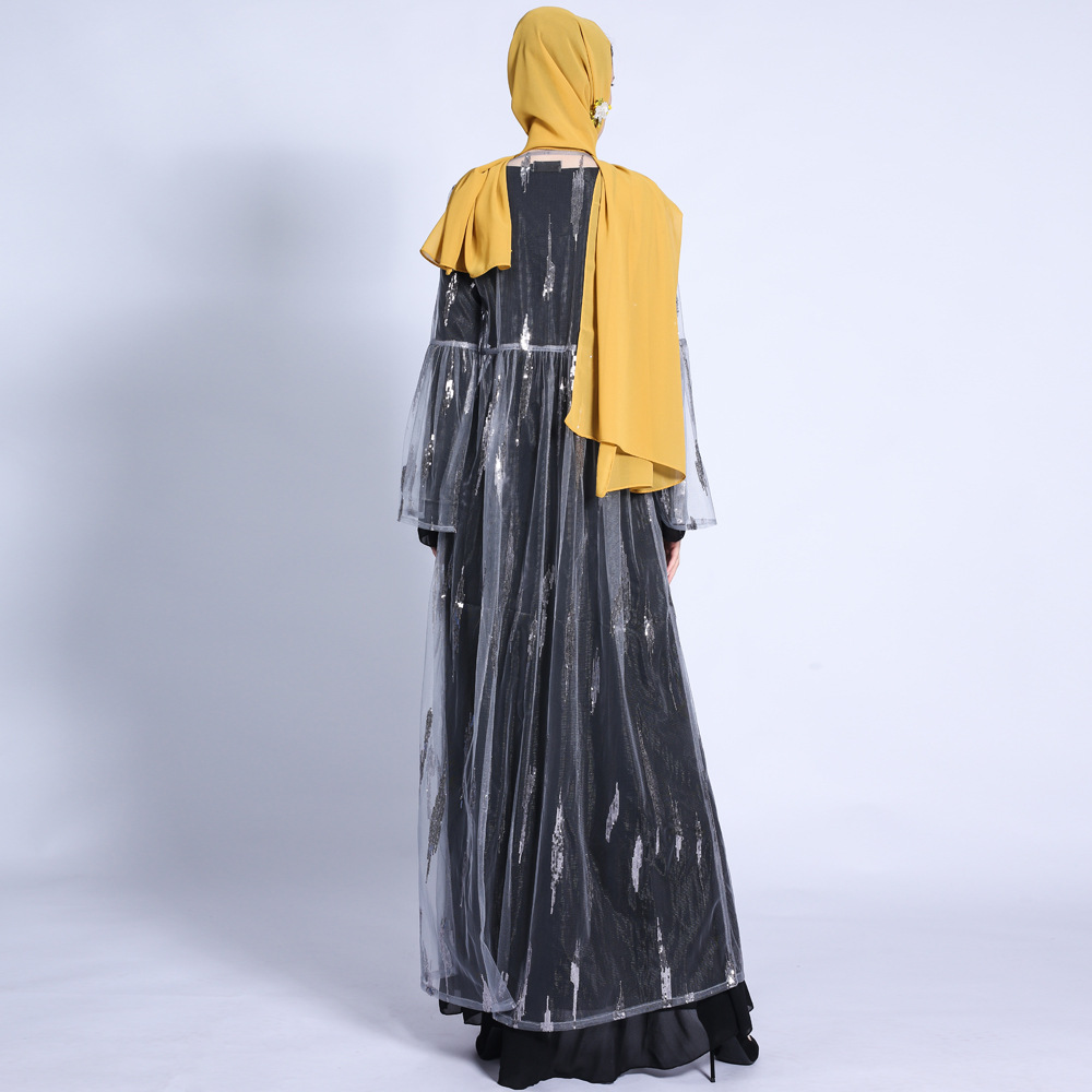 2022 Middle East foreign trade plus size Muslim fashion sequin stitching cardigan Nida robe female