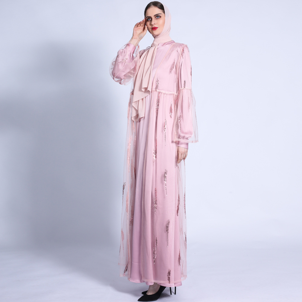 2021 Middle East Open Abaya Cardigan Skirt Applique Sequin Embroidered Cardigan Muslim