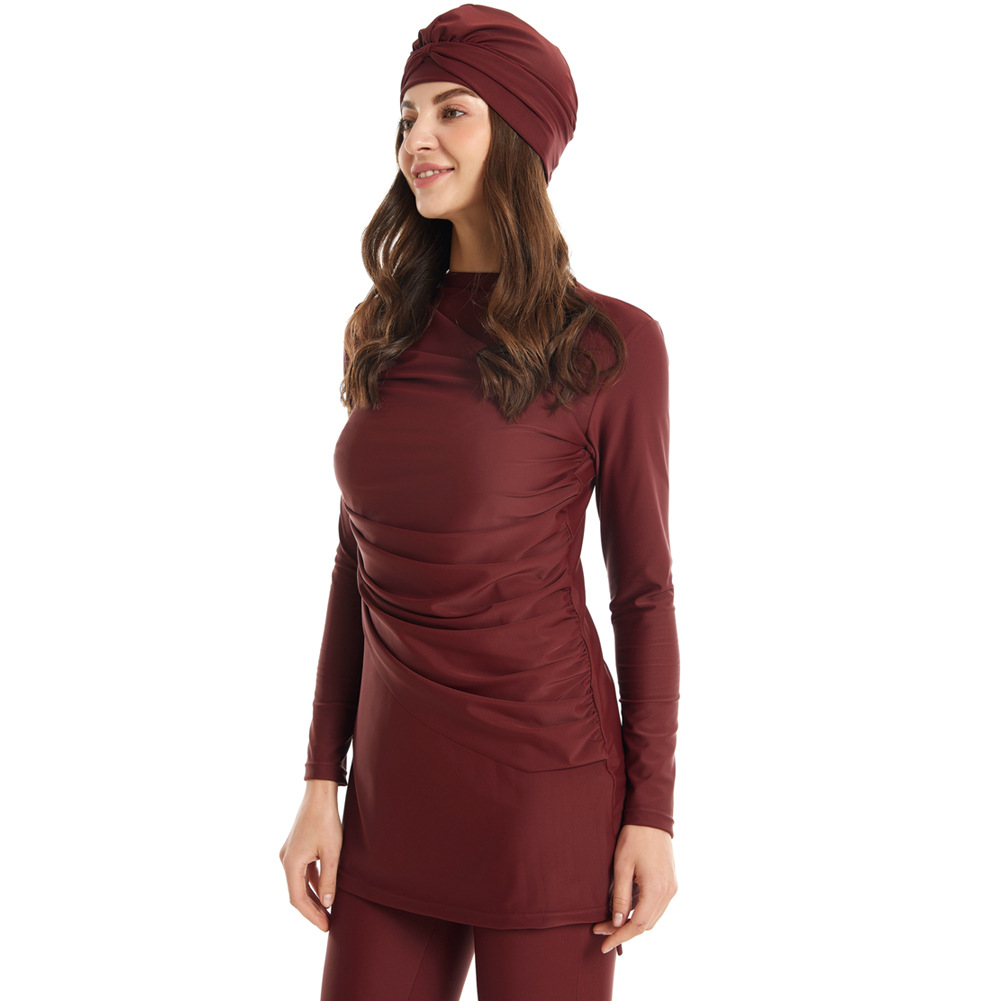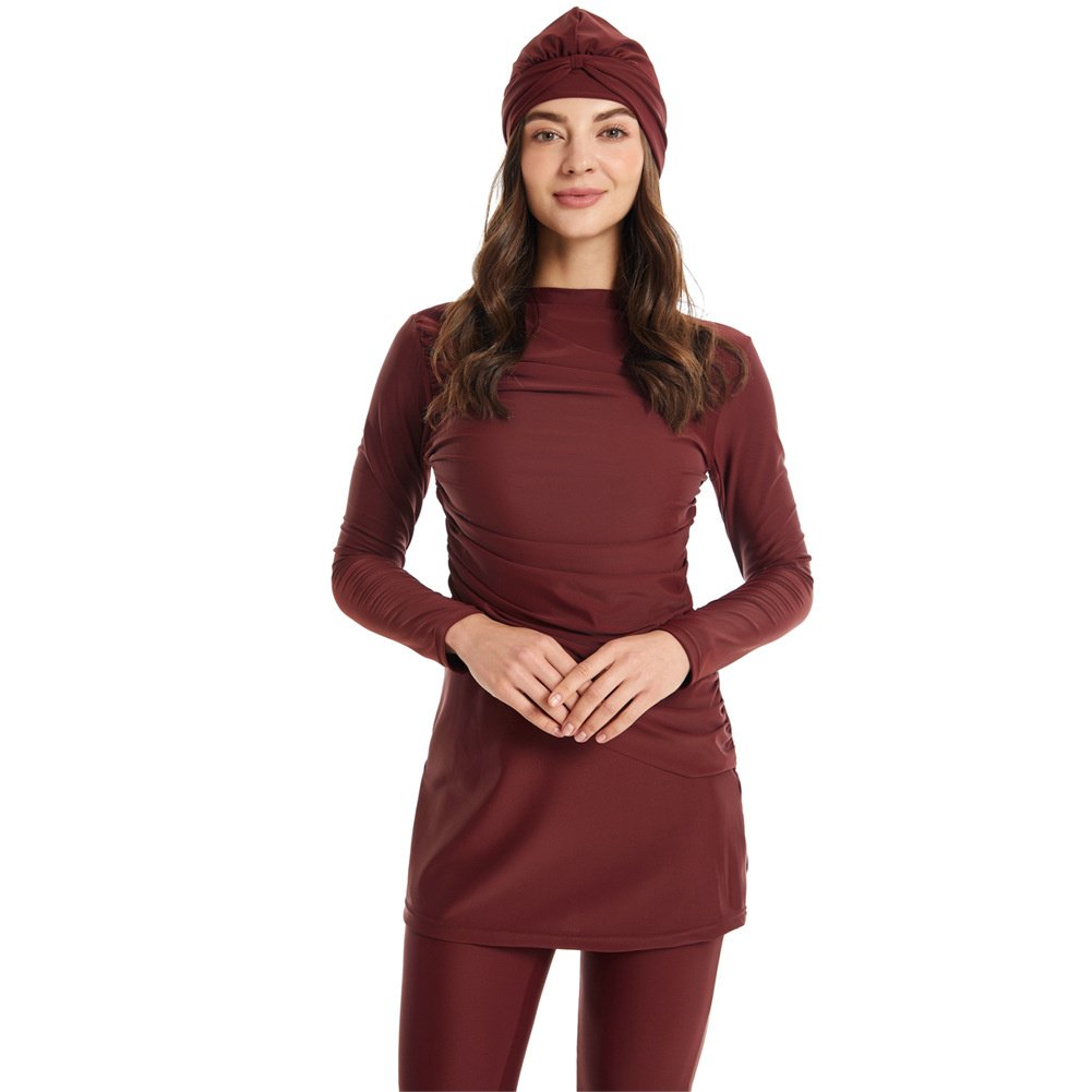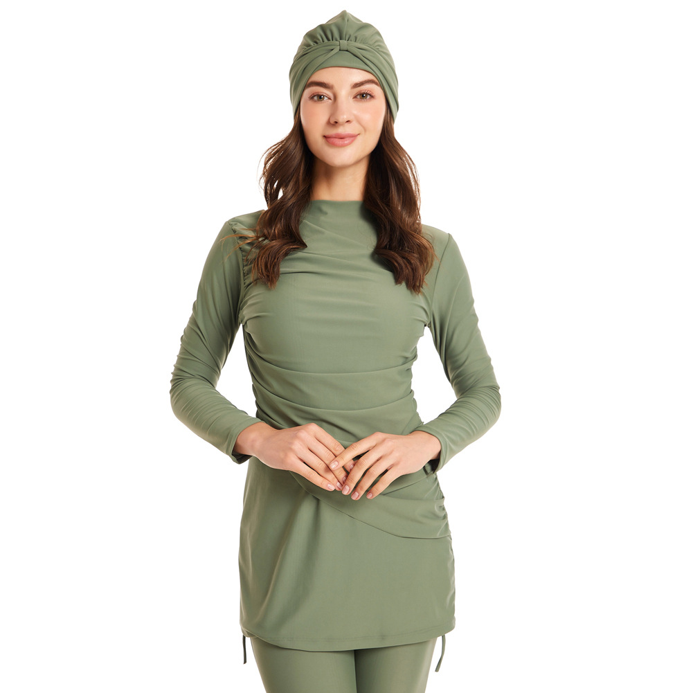 Modest Swimsuit Swimsuit Three-piece Muslim Swimsuit Hat Plus Size Swimsuit Zipper