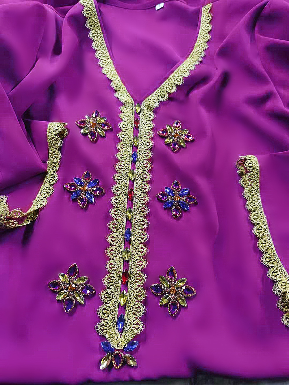 SIPO Luxury Italian Silk Abaya for Muslim Women with Handwork Embroidery And Matching Shawl